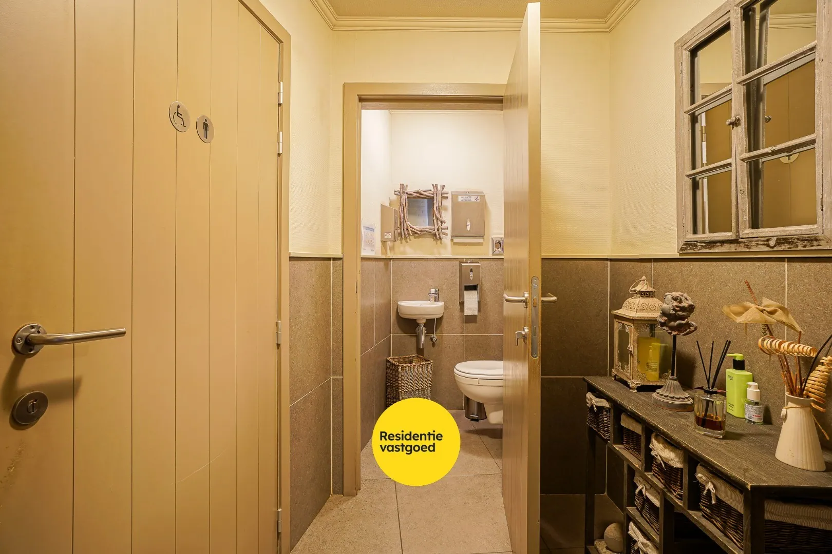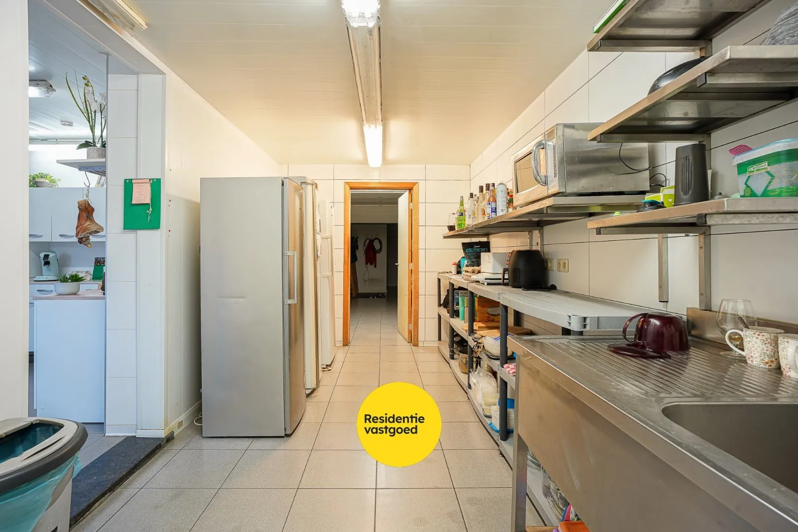Deze ruime handelswoning in het centrum van Aartrijke combineert wonen en werken. Het handelspand beschikt over een volledig ingerichte keuken met aansluitend een ruime frigocel, ideaal voor horeca- of voedingsactiviteiten. Voor een vlotte logistieke werking is er een aparte doorgang voor leveranciers voorzien, zodat leveringen efficiënt kunnen gebeuren zonder de klantenruimte te storen. Daarnaast zijn er aparte toiletten voor de zaak.