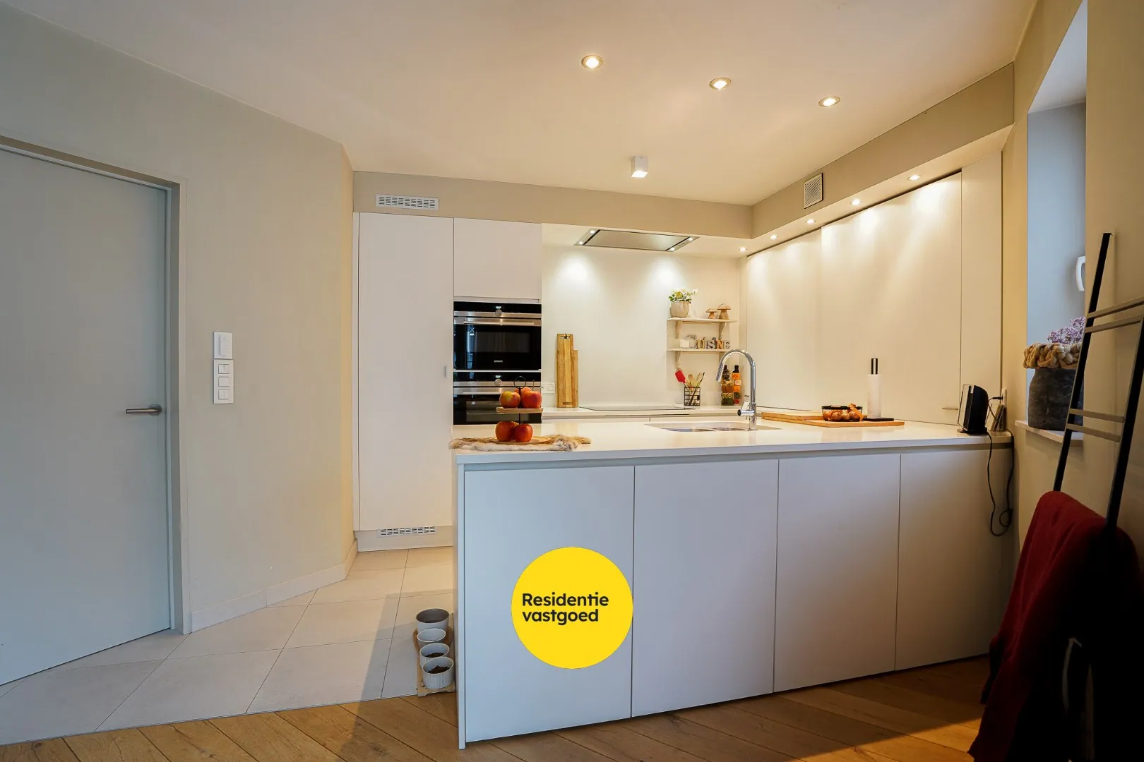 Het ruime terras van maar liefst 40 m² vormt een echte meerwaarde en biedt alle rust om volop van het buitenleven te genieten. Binnen zorgt de hoogwaardige afwerking voor een stijlvolle en warme sfeer, met onder meer een duurzame parketvloer en elegante vlinderscharnieren. De open keuken is volledig uitgerust met kwalitatieve toestellen van gerenommeerde merken en sluit naadloos aan op de leefruimte. De moderne badkamer beschikt over een ruime inloopdouche.