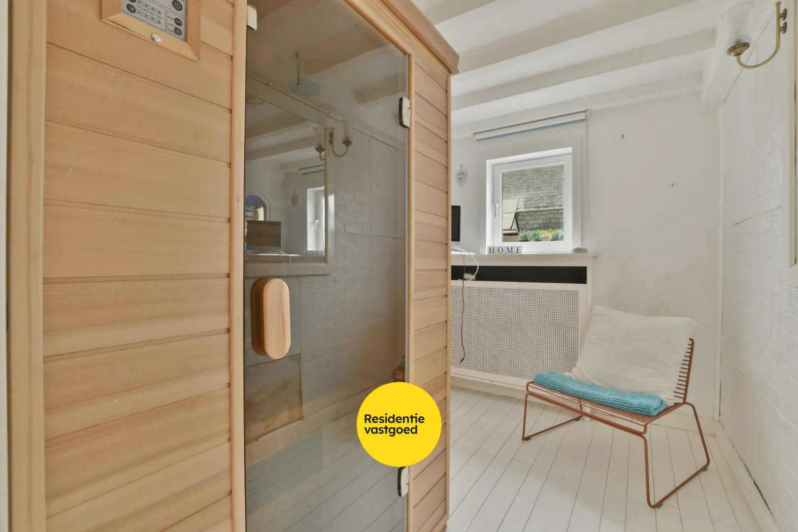 Op het gelijkvloers vindt u verder nog een berging, een eerste badkamer, een saunaruimte, een bureau en een slaapkamer, ideaal voor gelijkvloers wonen of het ontvangen van gasten. De bovenverdieping telt nog drie slaapkamers, waaronder twee ruime kamers en een kinderkamer, evenals een tweede badkamer.