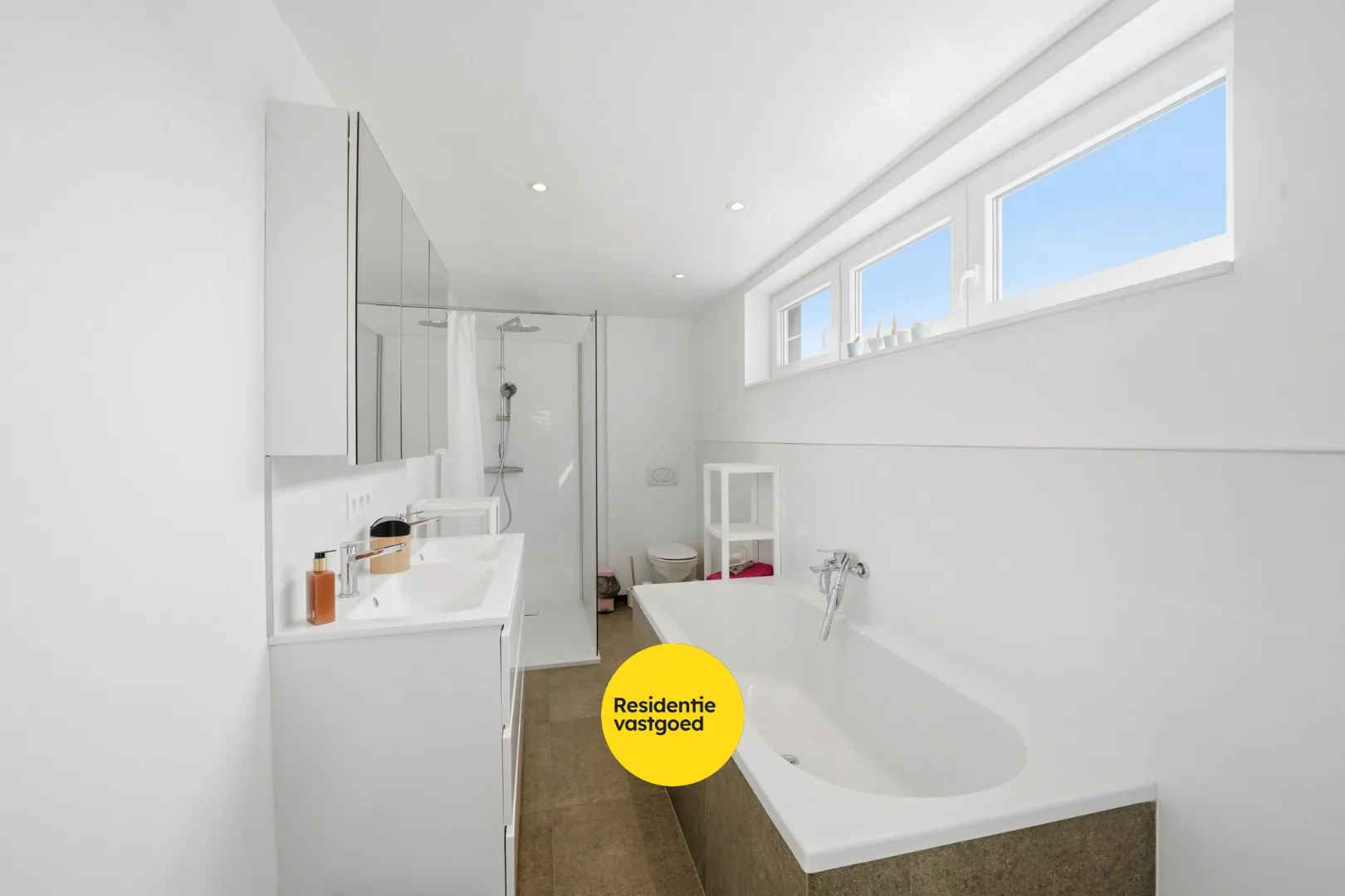 Op de eerste verdieping geeft de nachthal toegang tot drie volwaardige slaapkamers, allen voorzien van laminaatvloer en pvc ramen met hoogrendementsglas. De badkamer is volledig uitgerust met een dubbele lavabo, ligbad, inloopdouche en toilet. Daarnaast is er een handige berging/tussenhal met toegang tot de zolder (via een vaste trap).