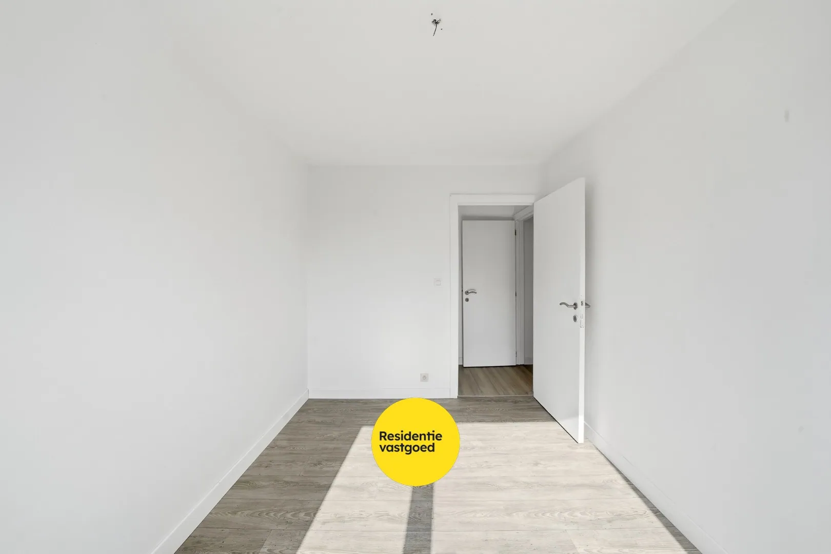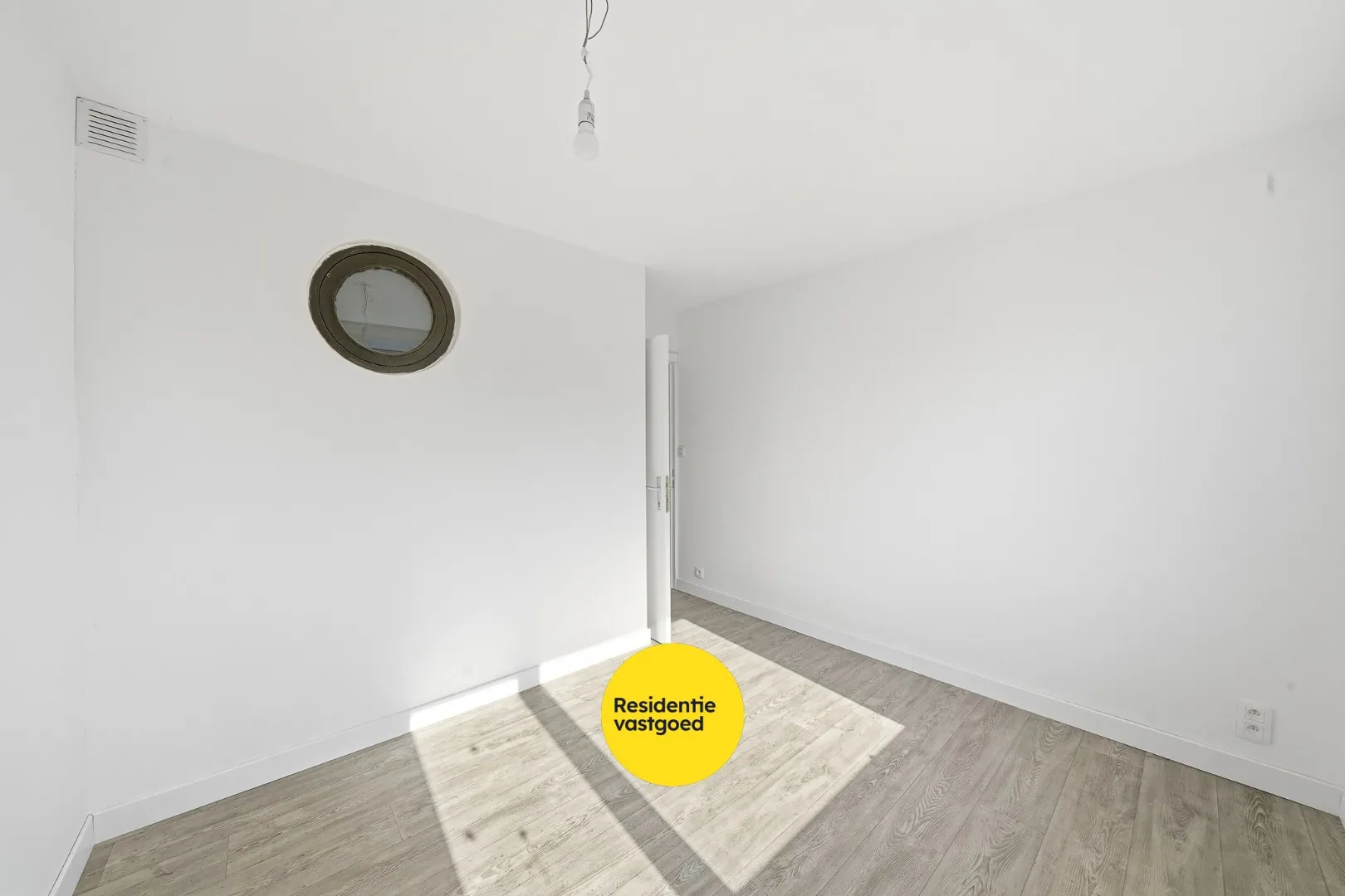 Het beschikt over een lichtrijke leefruimte met tegelvloer en een halfopen keuken, uitgerust met een elektrisch fornuis, oven, dampkap en koelkast met vriesvak. Verder zijn er twee slaapkamers met laminaatvloer, een badkamer met douche en toilet, en een praktische berging/wasplaats.