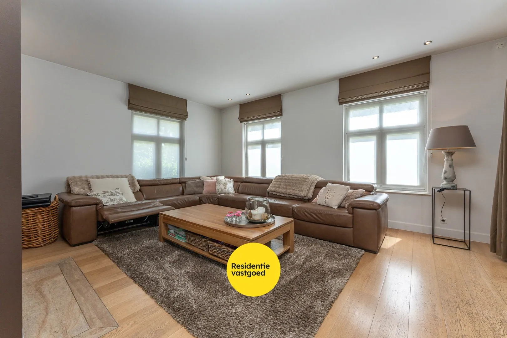 Binnen geniet u van een warme, tijdloze inrichting met natuursteen, parket en verfijnd maatwerk. De eetkamer en volledig uitgeruste keuken vormen het hart van de woning en bieden samen met alle leefruimtes een prachtig zicht op de tuin en het zwembad, waardoor binnen en buiten naadloos in elkaar overlopen. De lichtrijke leefruimte en praktische bureauruimte zorgen voor extra comfort en harmonie, met directe toegang tot het poolhouse vanuit de zithoek.