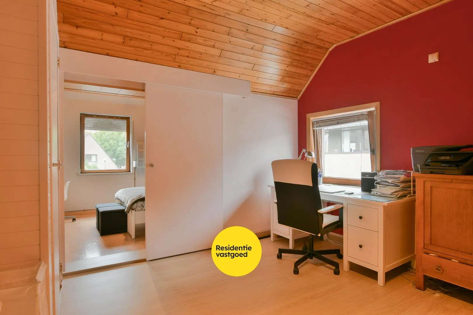 De eerste verdieping telt twee ruime slaapkamers en een polyvalente tussenruimte, perfect in te richten als extra slaapkamer, bureau of dressing. Ook hier werd een apart toilet voorzien. De zolderverdieping werd volledig afgewerkt tot een derde volwaardige kamer, ideaal als slaapkamer, hobbyruimte of thuiskantoor.