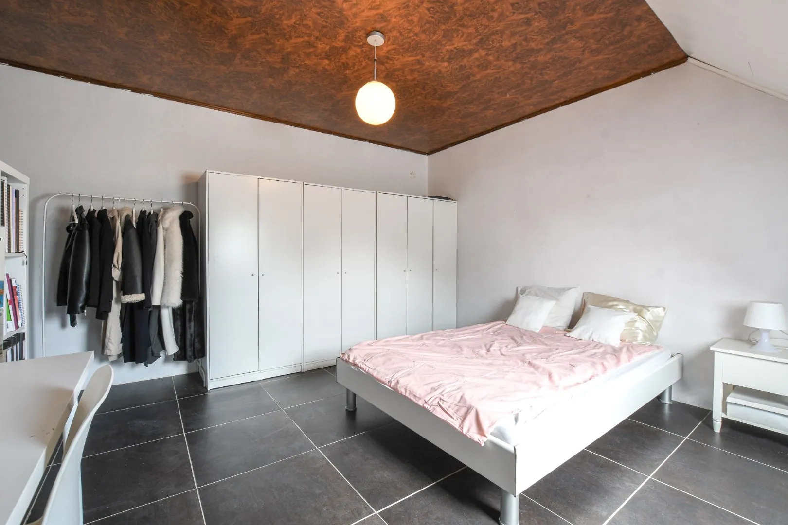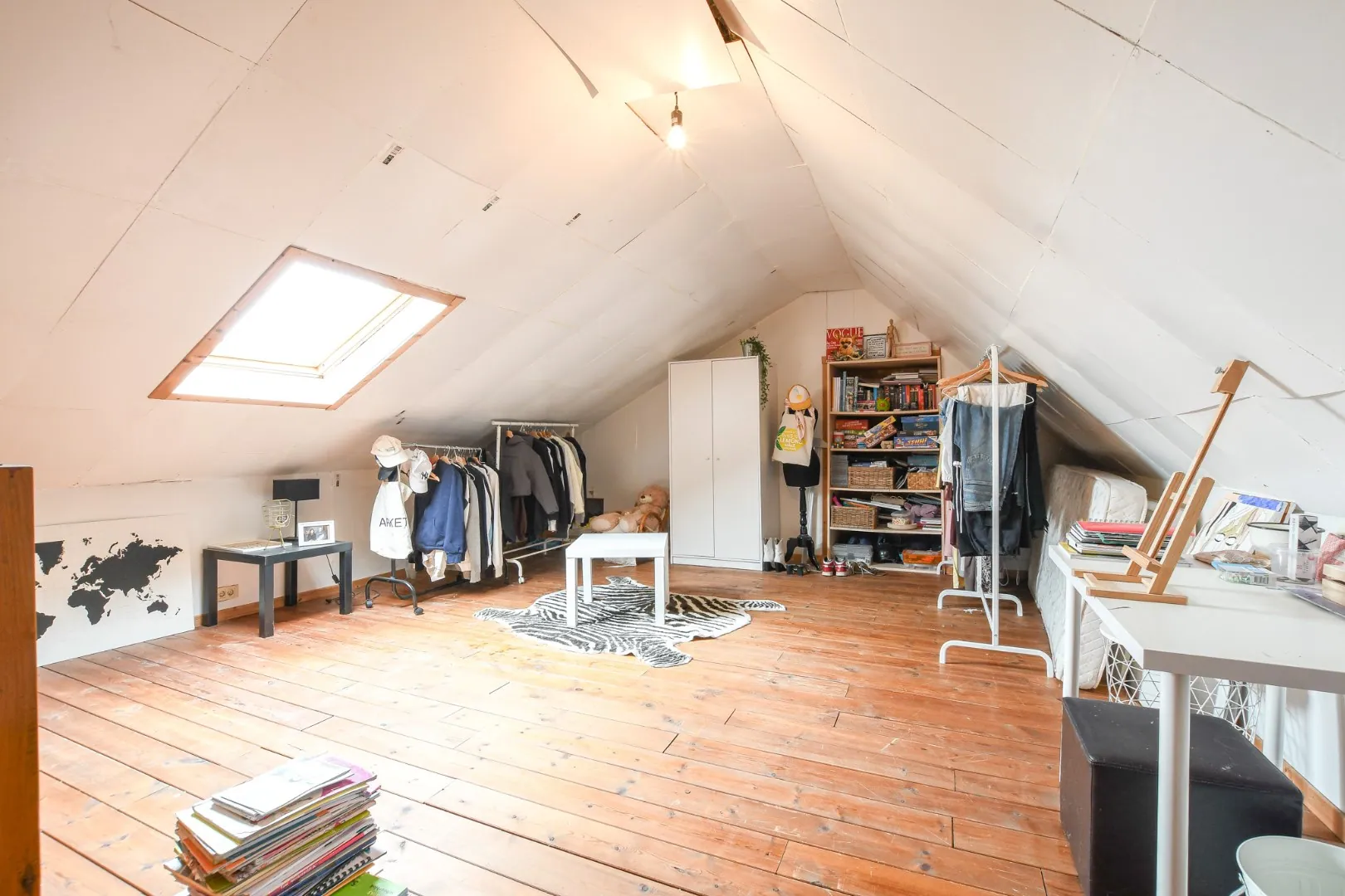 De tweede verdieping telt drie slaapkamers en een ruime badkamer met ligbad, inloopdouche en tweede toilet. Een vaste trap leidt naar de zolderverdieping met parketvloer en veluxraam.