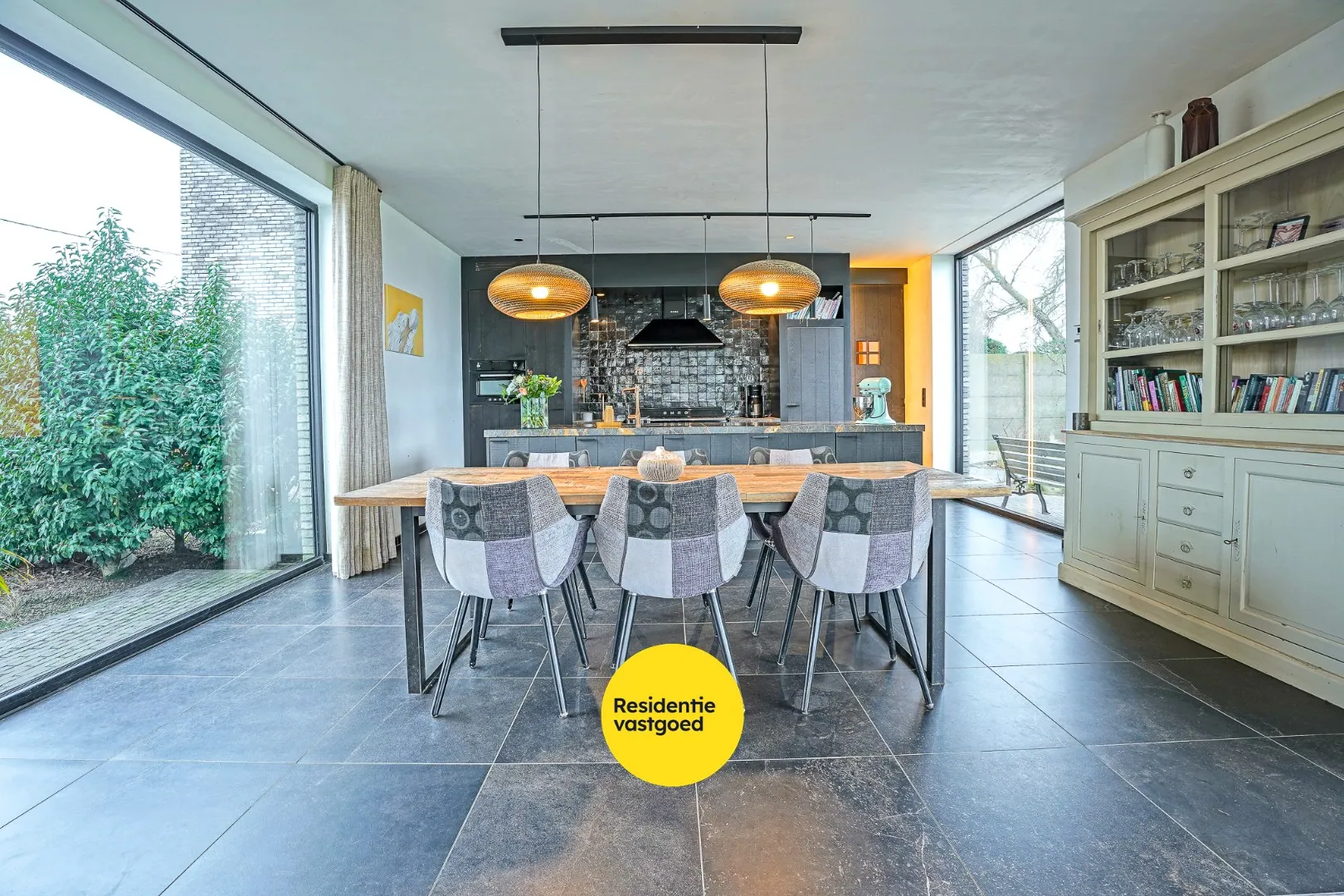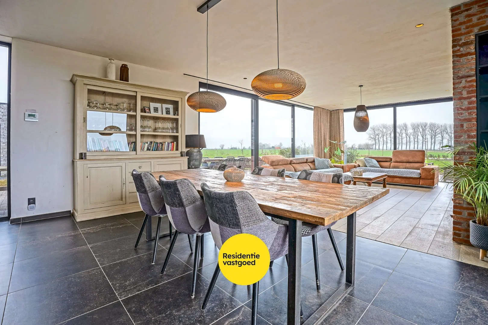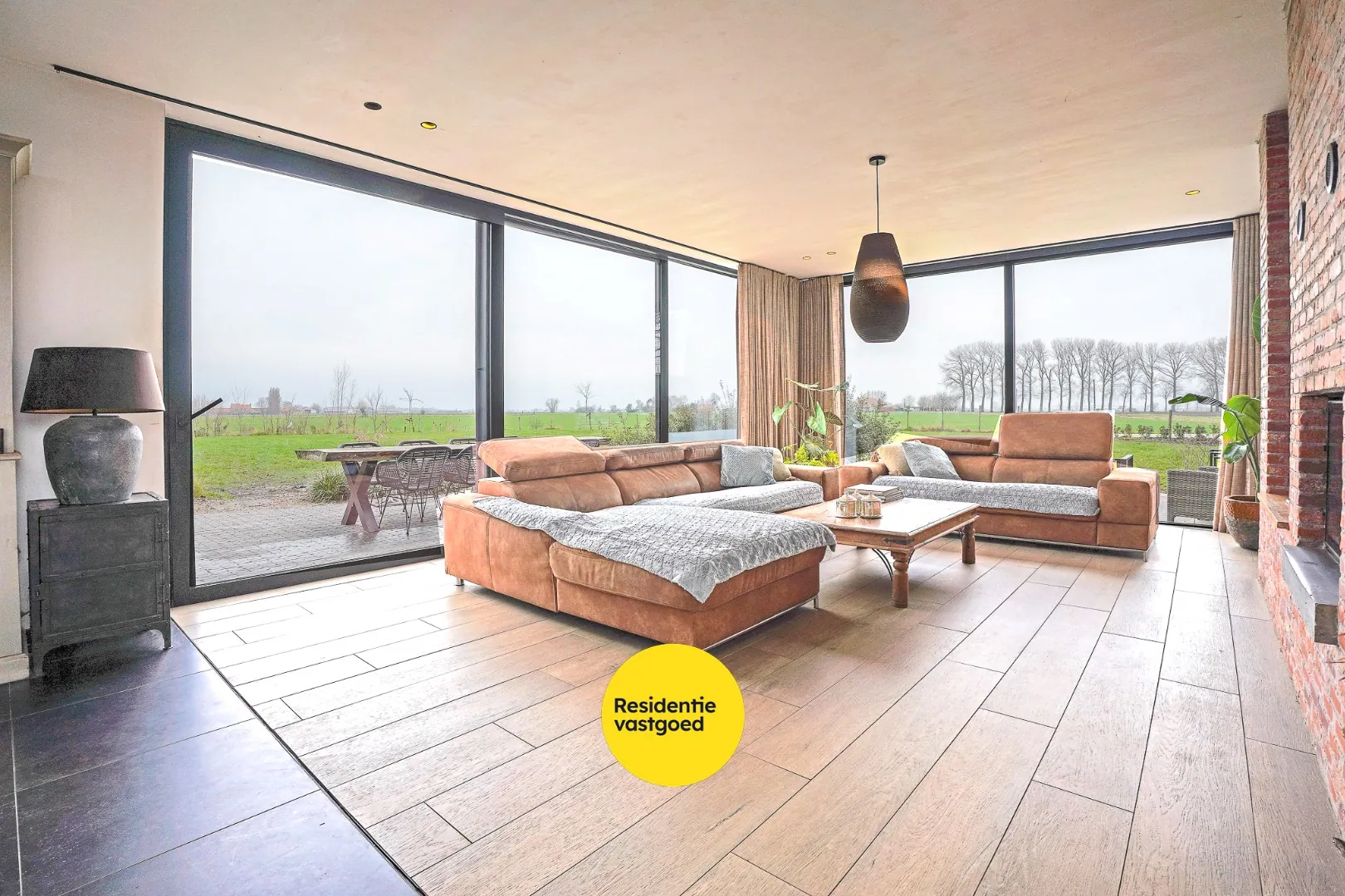KIJKDAG ZATERDAG 21/02 VAN 10U TOT 12U! (graag vooraf inschrijven) Recente, energiezuinige woning met prachtige vergezichten op een perceel van maar liefst 2.027 m², gelegen langs de IJzer in het groen en vlakbij het centrum van Diksmuide. Bij het betreden van de woning kom je terecht in een aangename inkomhal met apart gastentoilet en vestiaire. De luxueus afgewerkte open keuken is uitgerust met alle hedendaagse comfort en sluit naadloos aan op de lichtrijke leefruimte. Dankzij de grote raampartijen geniet je hier van prachtige, open zichten die het buitengevoel moeiteloos naar binnen brengen. De praktische garage combineert een berg- en wasruimte en beschikt over aansluitingen voor wasmachine en droogkast. Op de eerste verdieping bevindt zich de master bedroom met eigen dressing en en-suite badkamer. Daarnaast zijn er nog twee volwaardige slaapkamers, een tweede badkamer en een apart toilet. De tweede verdieping biedt plaats aan twee ruime kamers die perfect kunnen ingericht worden als extra slaapkamers, bureau of hobbyruimte.