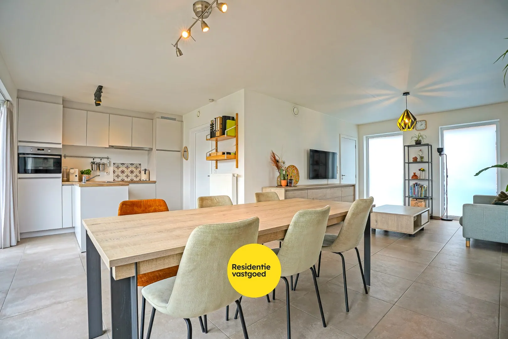 De open keuken sluit naadloos aan bij de leefruimte en biedt alle comfort om gezellig te koken en samen te zijn. Aansluitend bevindt zich een praktische berging/wasplaats, ideaal voor extra stockage en huishoudelijke organisatie.
