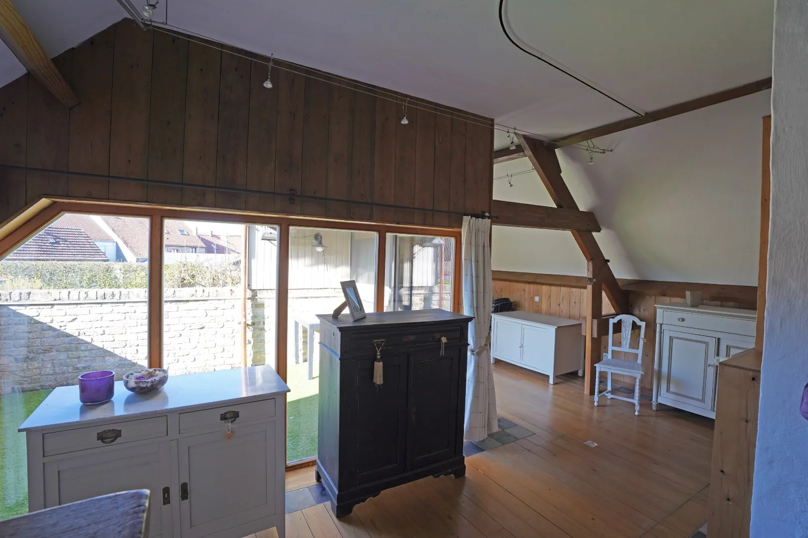 KIJKDAG ZATERDAG 25/04 VAN 10U TOT 12U! (graag vooraf inschrijven) Unieke woning met polyvalente ruimte en zonnige tuin. In het landelijke Pervijze, vlakbij de kust en toegangswegen, bevindt zich deze uitzonderlijk ruime woning met een polyvalente ruimte die momenteel is ingericht als handelsruimte. De privéwoning beschikt over een ruime inkomhal met ingemaakte kasten en gastentoilet. De lichtrijke leefruimte met parketvloer en gezellige gashaard vormt het centrale leefgedeelte en sluit aan op de bureauruimte met lichtstraat en rechtstreekse toegang tot het terras en de zuidgerichte tuin. De volledig uitgeruste keuken met kwalitatieve toestellen geniet van veel natuurlijke lichtinval. Aansluitend liggen een praktische berging en een multifunctionele wasruimte met inloopdouche. De zonnige tuin vormt een absolute meerwaarde en beschikt over een terras, vijver, geïsoleerd tuinhuis en een sfeervolle herberg met keukenvoorzieningen, ideaal voor ontspanning of het ontvangen van gasten. Op de eerste verdieping bevinden zich een ruime nachthal, een comfortabele badkamer en een grote slaapkamer met dressing. De tweede verdieping biedt plaats aan een bijzonder ruime tweede slaapkamer. De polyvalente ruimte, verspreid over het gelijkvloers en de eerste verdieping, biedt tal van mogelijkheden zoals een winkel, kantoor, praktijk, garage, woonuitbreiding of kangoeroewonen. Er is een aparte inkom, verschillende ruimtes, sanitaire voorzieningen en een dakterras aanwezig. De vermelde prijs is een startprijs, elk bod hoger dan deze prijs wordt voorgelegd aan de eigenaar die zich het recht voorbehoudt om dit te aanvaarden of te weigeren.