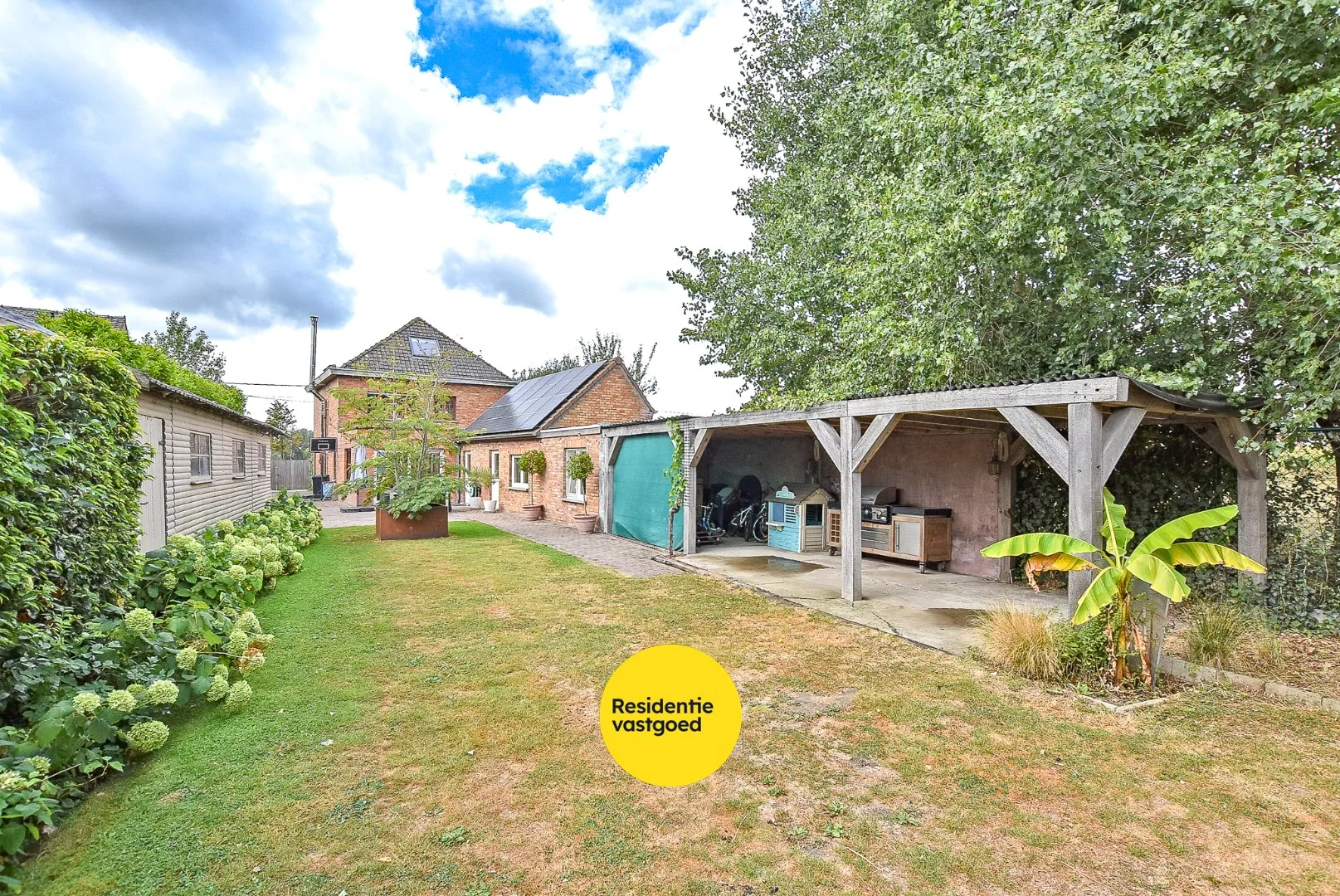 De wagen parkeer je zowel op de oprit, in de inpandige garage, achter de poort of in de losstaande garage in de tuin.