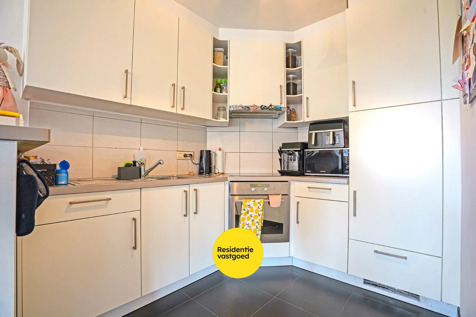 Dit recent appartement verwelkomt u met een aangename inkomhal met gastentoilet en leidt u naar de lichtrijke leefruimte met open, geïntegreerde keuken. Dankzij de grote raampartijen geniet u hier de hele dag door van een overvloed aan natuurlijk licht en een mooi zicht op het buitengebeuren.