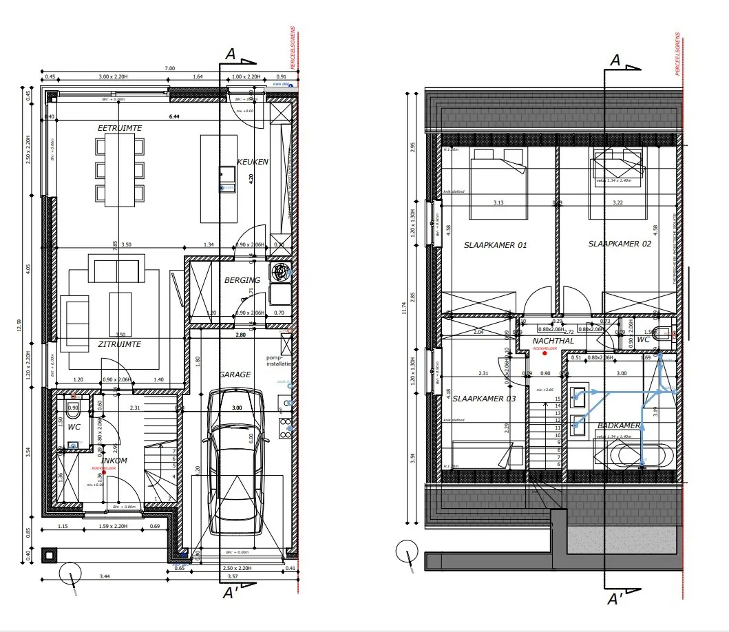 De woning biedt twee volwaardige verdiepingen. Op het gelijkvloers vindt u een ruime, lichtrijke leefruimte met open keuken. Daarnaast beschikt de woning over een berging, praktische garage met oprit, inkomhal én een afzonderlijk gastentoilet. Op de eerste verdieping bevinden zich drie volwaardige slaapkamers, een badkamer en een apart toilet op de nachthal.