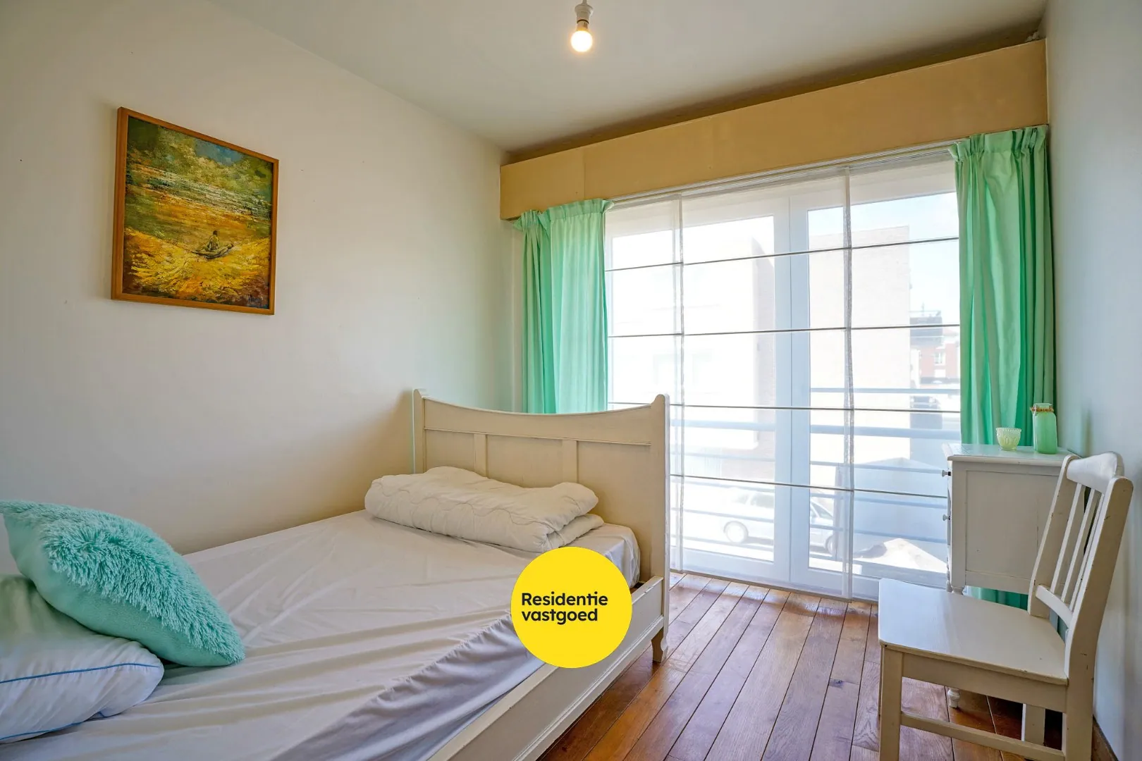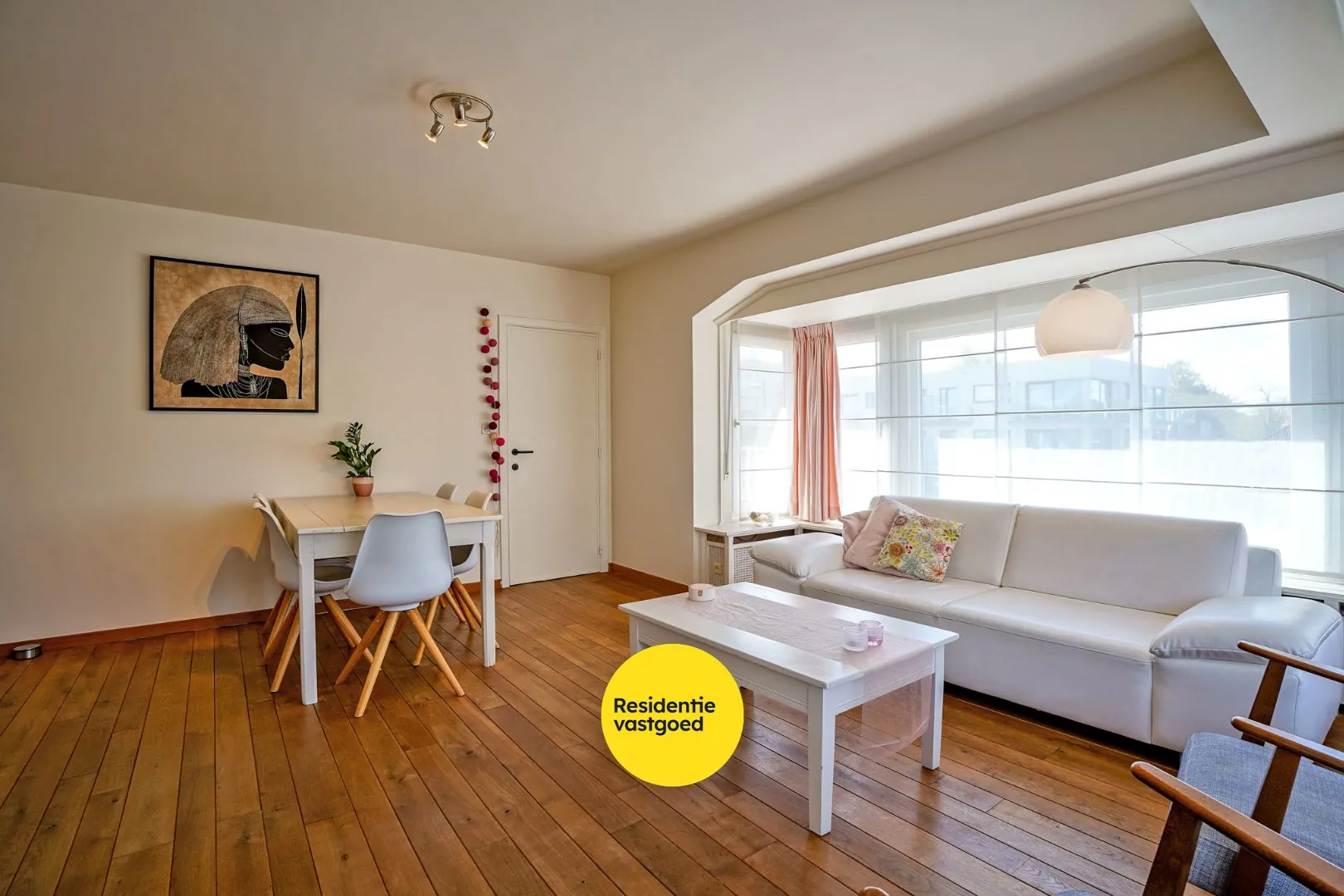 Gelegen op de eerste verdieping van een kleinschalige residentie zonder lift (lage kosten) en met een bewoonbare oppervlakte van 109 m². De lichtrijke leefruimte met parket en gashaard sluit aan op de volledig vernieuwde keuken (2025). Via het schuifraam bereikt u het zuidwestgericht terras. Verder zijn er drie volwaardige slaapkamers (één met terras), een vernieuwde badkamer (2025), apart toilet en berging.