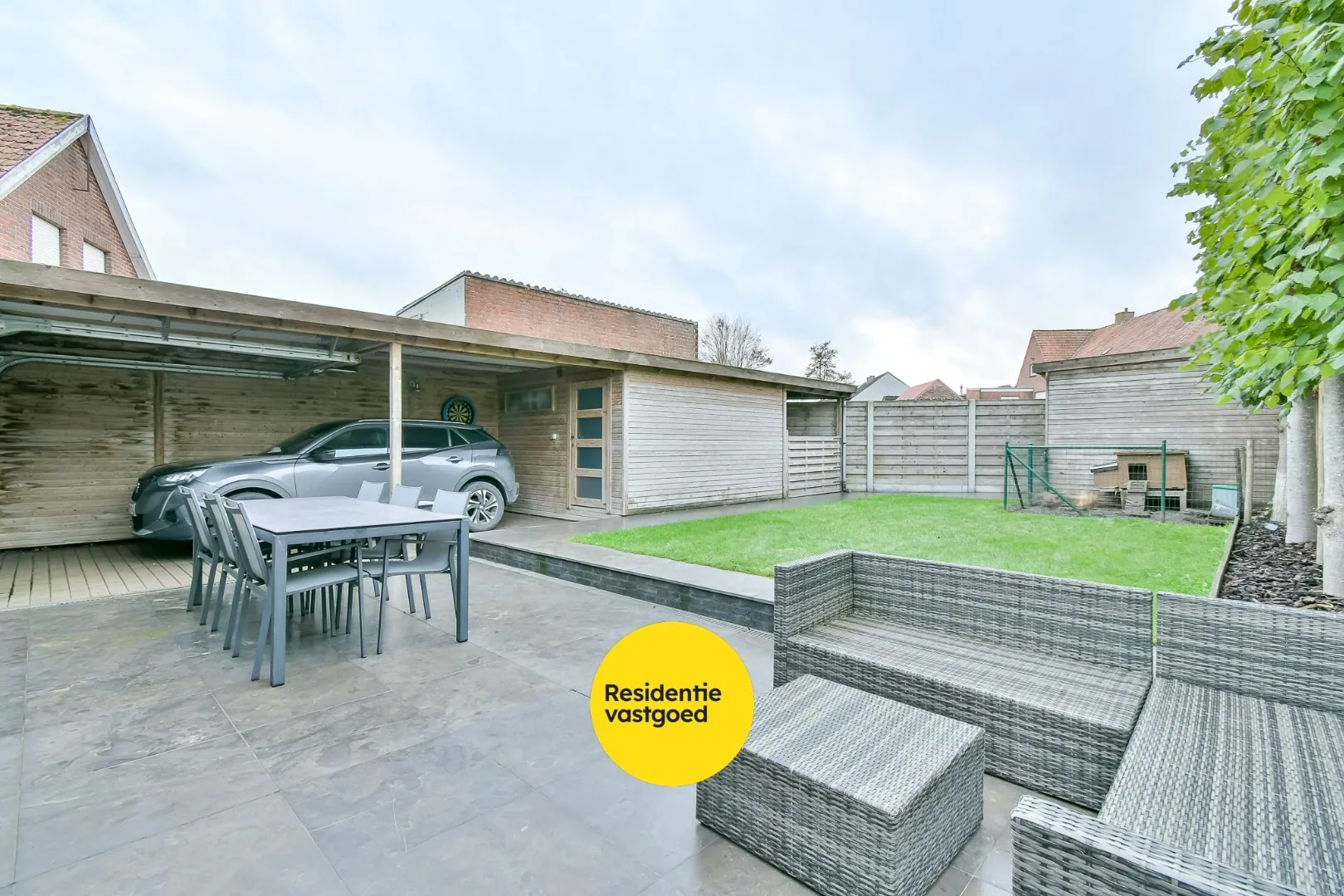 Buiten geniet u van een ruim terras, een verzorgde tuin, een halfopen carport met elektrische poort en een handig tuinhuis.