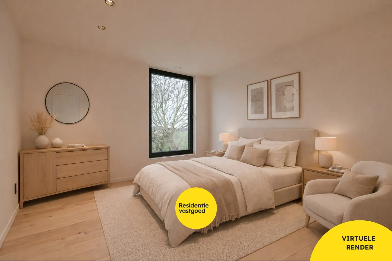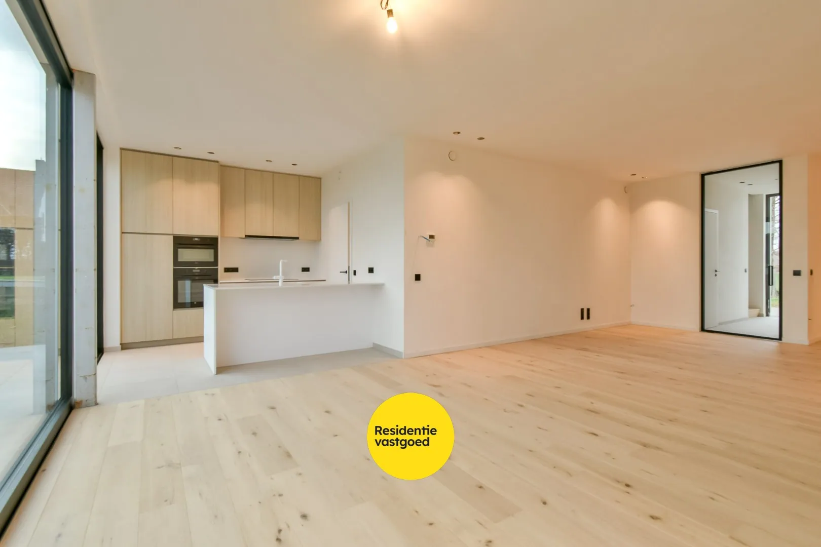 U wordt verwelkomd in een ruime inkomhal met gastentoilet. Van hieruit betreedt u de lichtrijke en aangename leefruimte met aansluitend een bureau, die dankzij de grote raampartijen geniet van een mooie natuurlijke lichtinval en een open zicht op de tuin. De open, moderne keuken sluit naadloos aan bij de leefruimte en is afgewerkt met duurzame materialen en kwalitatieve toestellen.