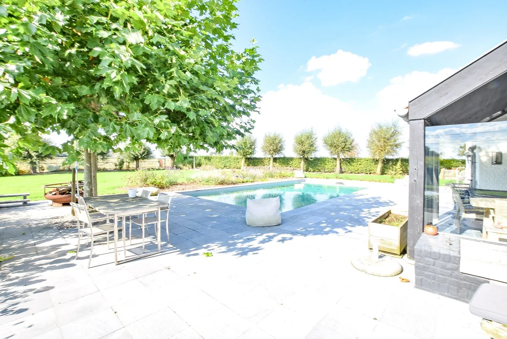 Uniek eigendom met loods (300m²) in een doodlopende straat. Deze woning met loods en ingerichte loft, omgeven door een prachtige natuur biedt de perfecte combinatie van privacy, comfort en functionaliteit. De woning beschikt over een luxueuze leefruimte, moderne keuken, gerenoveerde badkamer, 4 slaapkamers, bureauruimte, polyvalente kamer en een technische ruimte. In de uitgestrekte tuin kunt u optimaal genieten van het buitenleven en de rust van de omringende natuur. Een grote troef van deze eigendom is de ruime loods, die uitermate geschikt is voor diverse doeleinden zoals opslag of hobbyruimte. Ideaal voor ondernemers of wie op zoek is naar extra ruimte voor projecten. Laat u verrassen door de unieke combinatie van rust, ruimte en natuur die deze exclusieve woning te bieden heeft!