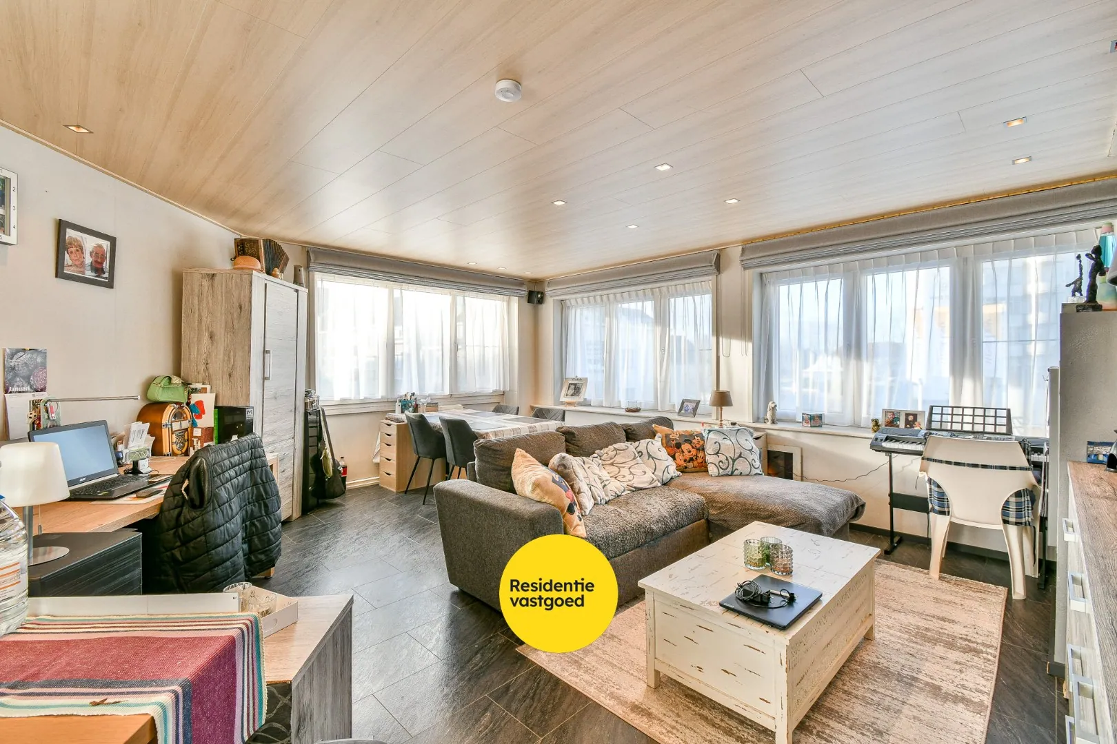 Boven bevindt zich een comfortabele duplexwoning met leefruimte en open keuken, badkamer, vier slaapkamers en een aangenaam deels overdekt terras. Het gebouw is technisch goed uitgerust met energiezuinige beglazing, conforme elektriciteit, een efficiënte verwarmingsinstallatie en extra voorzieningen zoals een waterontharder. Een unieke kans voor horeca-uitbaters die op zoek zijn naar een goed gelegen, rendabele zaak met woonst aan zee.