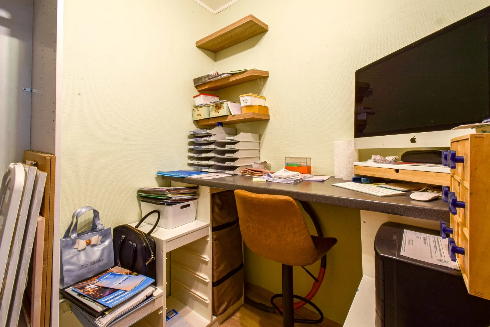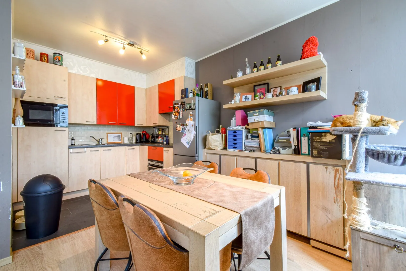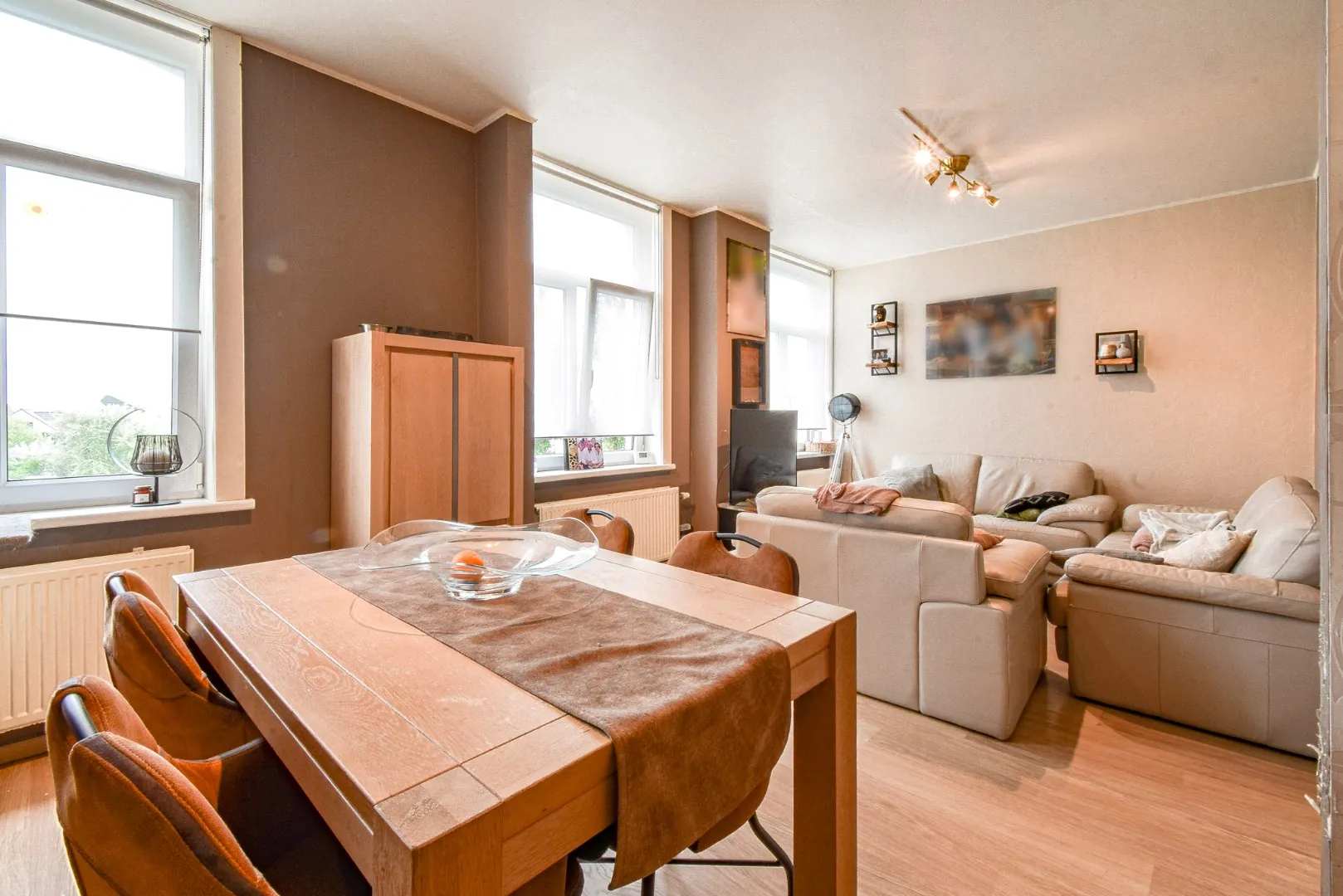 De woonst strekt zich uit over de eerste en tweede verdieping. Op de eerste verdieping vinden we een gezellige leefruimte met open keuken, een zeer ruime badkamer met bad, douche, toilet en dubbele lavabo, een grote slaapkamer, een berging, apart toilet en een terras van 18,25 m².