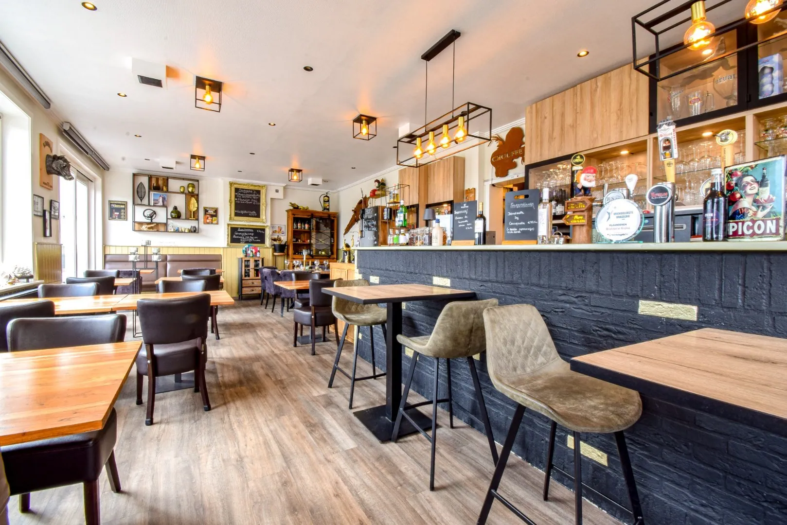 De handelszaak bevindt zich op het gelijkvloers en beschikt over een uitnodigend terras waar klanten heerlijk kunnen genieten. Binnenin tref je een ruime zaak met barinstallatie, een functionele keuken met bijkeuken, een aparte afwasruimte en een sanitair blok. Ideaal voor wie een horecazaak wil starten of overnemen. De kelderverdieping biedt praktische stockagemogelijkheden.