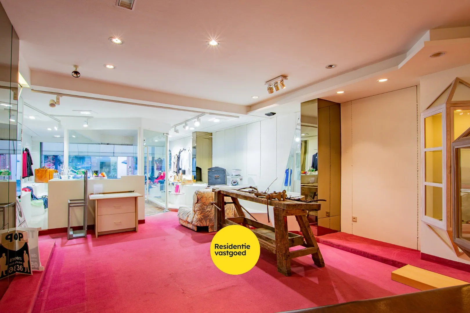 Op het gelijkvloers vinden we een mooie winkelruimte van > 100 m², met wasplaats en kelder.