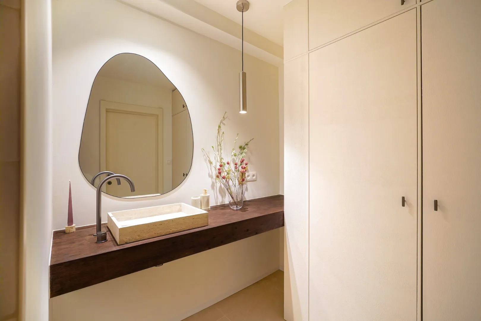 Dit ruime appartement, gelegen op de 3de verdieping in een kleinschalig gebouw met lift (slechts 1 appartement per verdieping), werd het afgelopen jaar volledig en smaakvol gerenoveerd. Er werden nieuwe ramen geplaatst, leidingen vernieuwd en de volledige binnenafwerking werd tot in de puntjes afgewerkt met oog voor detail en een rustige, tijdloze stijl.