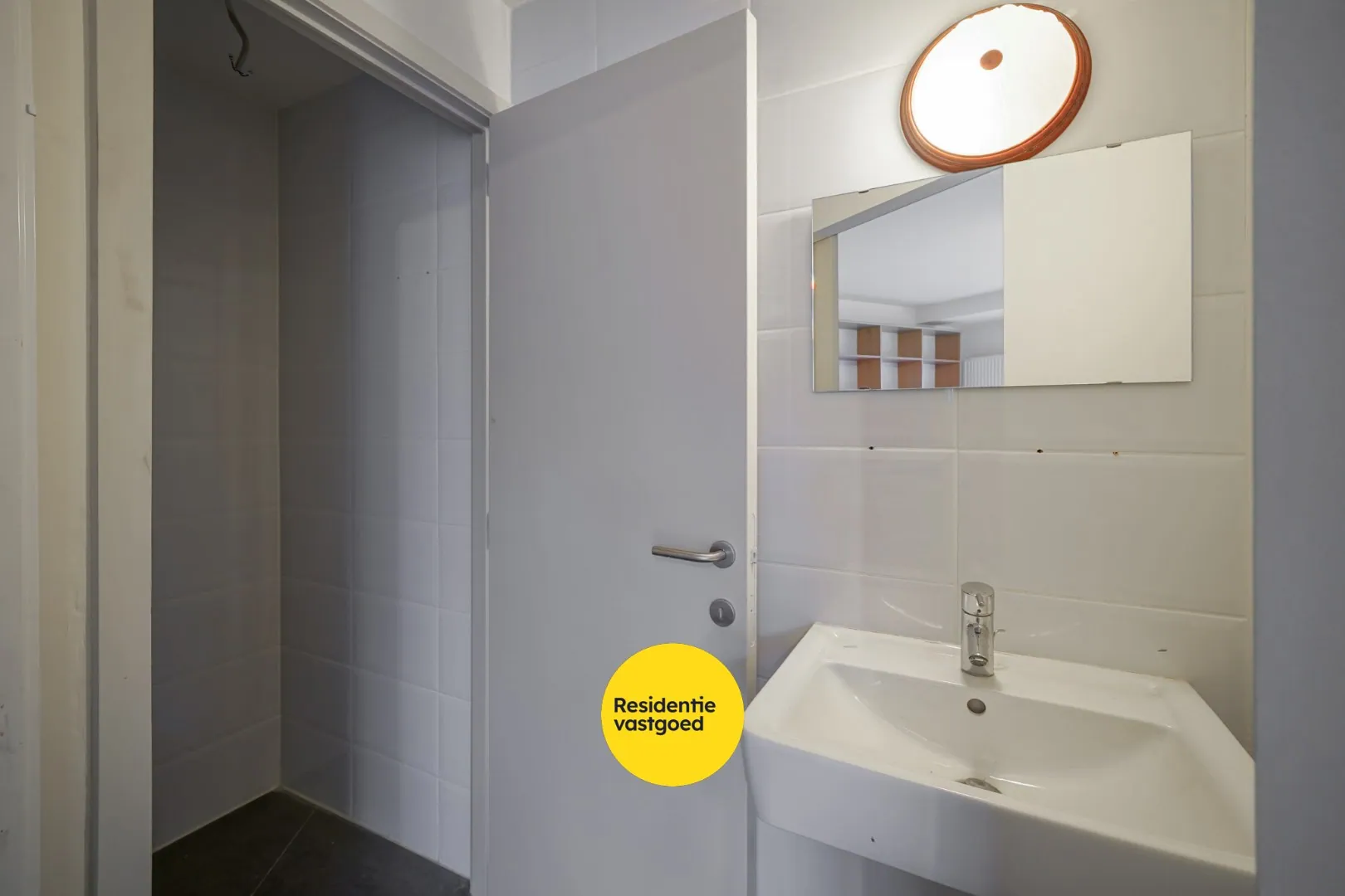 Via de inkomhal komt u rechts in een lichtrijke bureau- of wachtruimte met aangename werksetting. Aansluitend is er een praktische berging met aansluiting voor wasmachine en mogelijkheid tot het plaatsen van een toilet. Verder beschikt het pand over een aparte kantoorruimte van ca. 5,14 x 5 m met ingemaakte kasten en vaste bureau, een sas met lavabo en toegang tot een afzonderlijke douchekamer, en een volledig ingerichte keuken met schuifdeur, voorzien van elektrisch fornuis, frigo met vriesvak en combi-oven. Tot slot zijn er nog een tweede sas met zekeringkast en een apart toilet met lavabo en ventilatie.