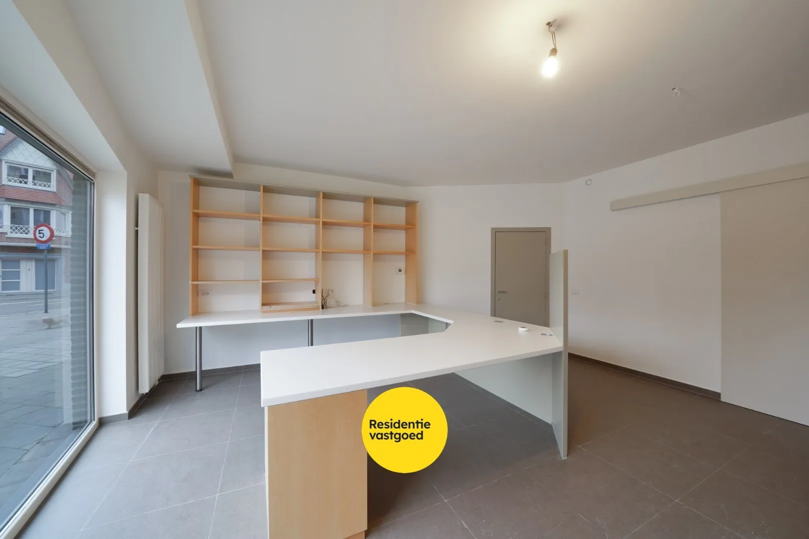 Via de inkomhal komt u in de leefruimte, die geniet van veel natuurlijk licht en voldoende plaats biedt voor een zithoek en eetruimte. Aansluitend bevindt zich een sas met lavabo en toegang tot een afzonderlijke douchekamer. Verder beschikt het appartement over een aparte slaapkamer, berging met aansluiting voor wasmachine en een volledig ingerichte keuken met schuifdeur, voorzien van elektrisch fornuis, frigo met vriesvak en combi-oven. Daarnaast is er een apart toilet met lavabo en ventilatie.