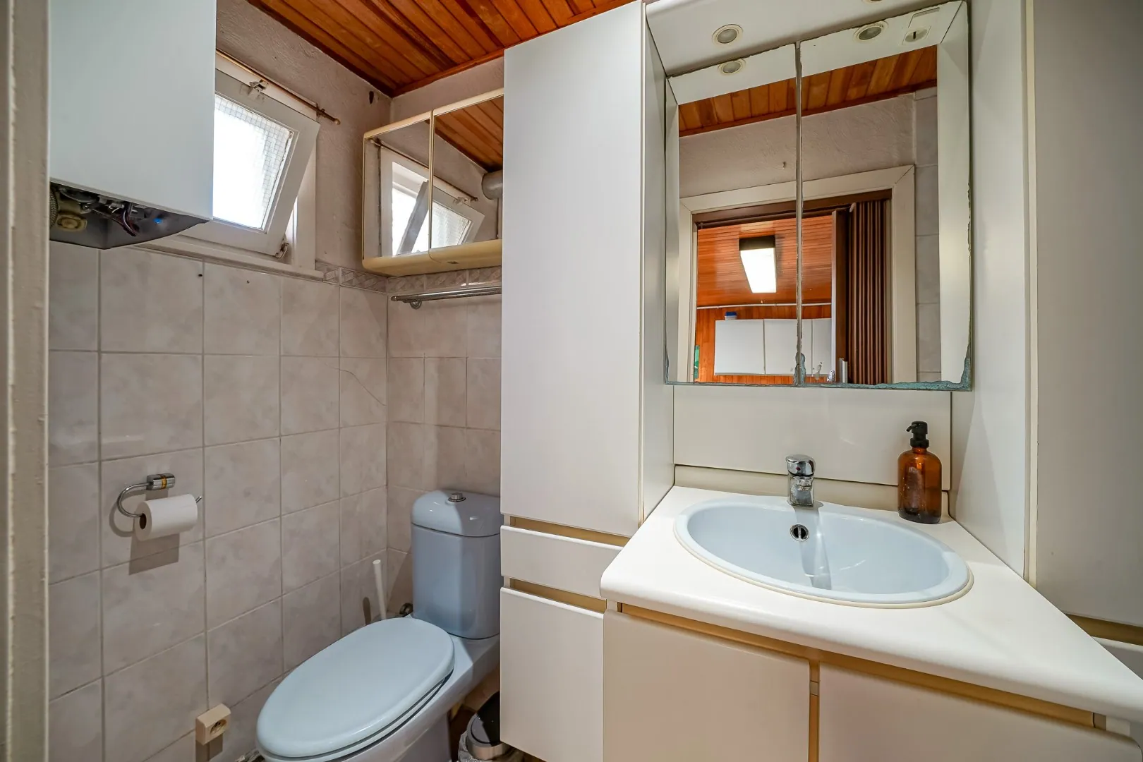 Achteraan bevindt zich de badkamer, uitgerust met douchecabine, lavabo in meubel en toilet. Vanuit de keuken stap je in de onderhoudsvriendelijke buitenruimte met deels overdekt terras en een handige buitenberging.