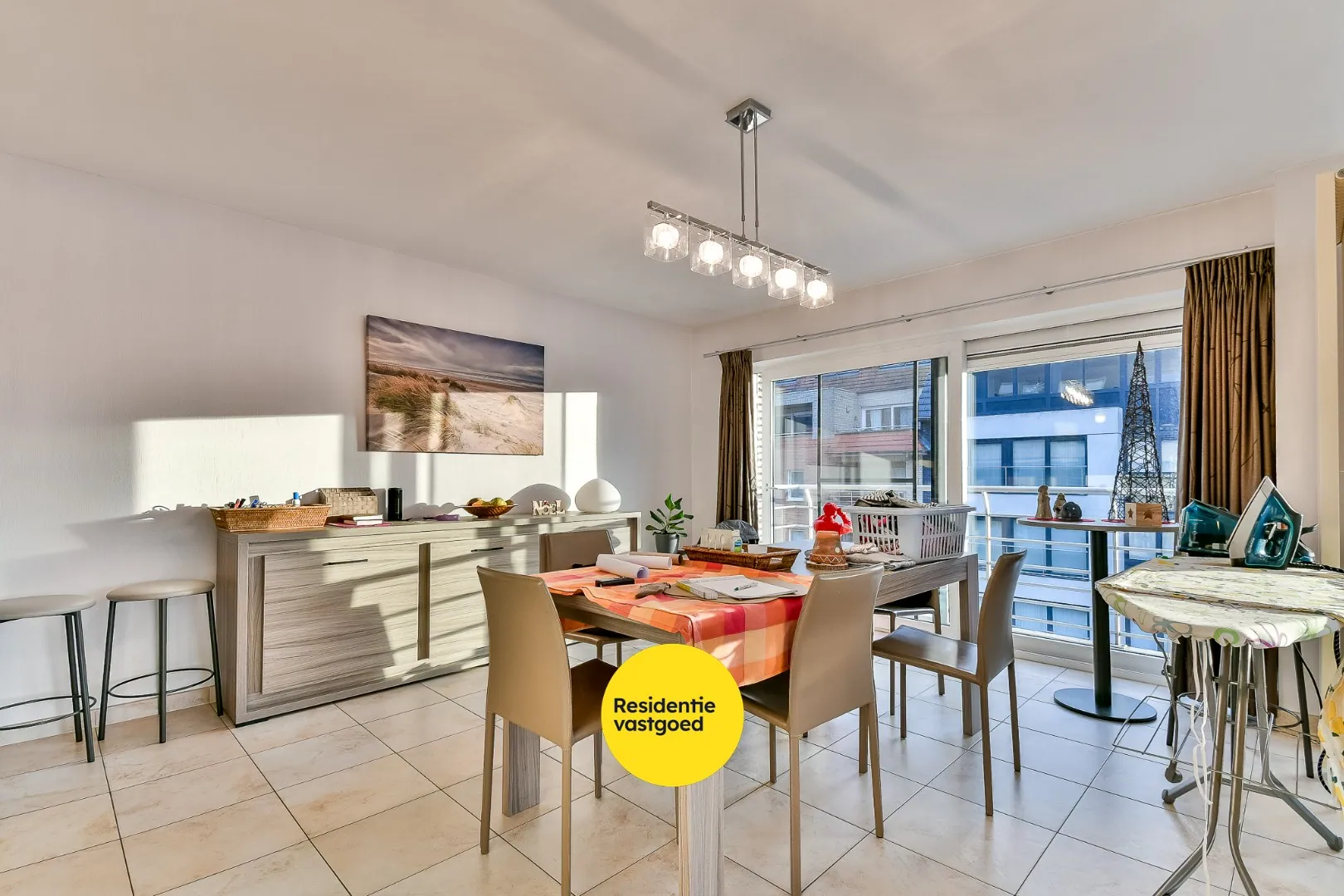 Dit lichtrijk appartement in Oostende op de derde verdieping beschikt over een inkomhal, twee slaapkamers, badkamer, apart toilet, berging, keuken en lichtrijke eetruimte met aansluitend de leefruimte. Bij dit appartement is een garage aanwezig met verlichting en elektriciteit.
