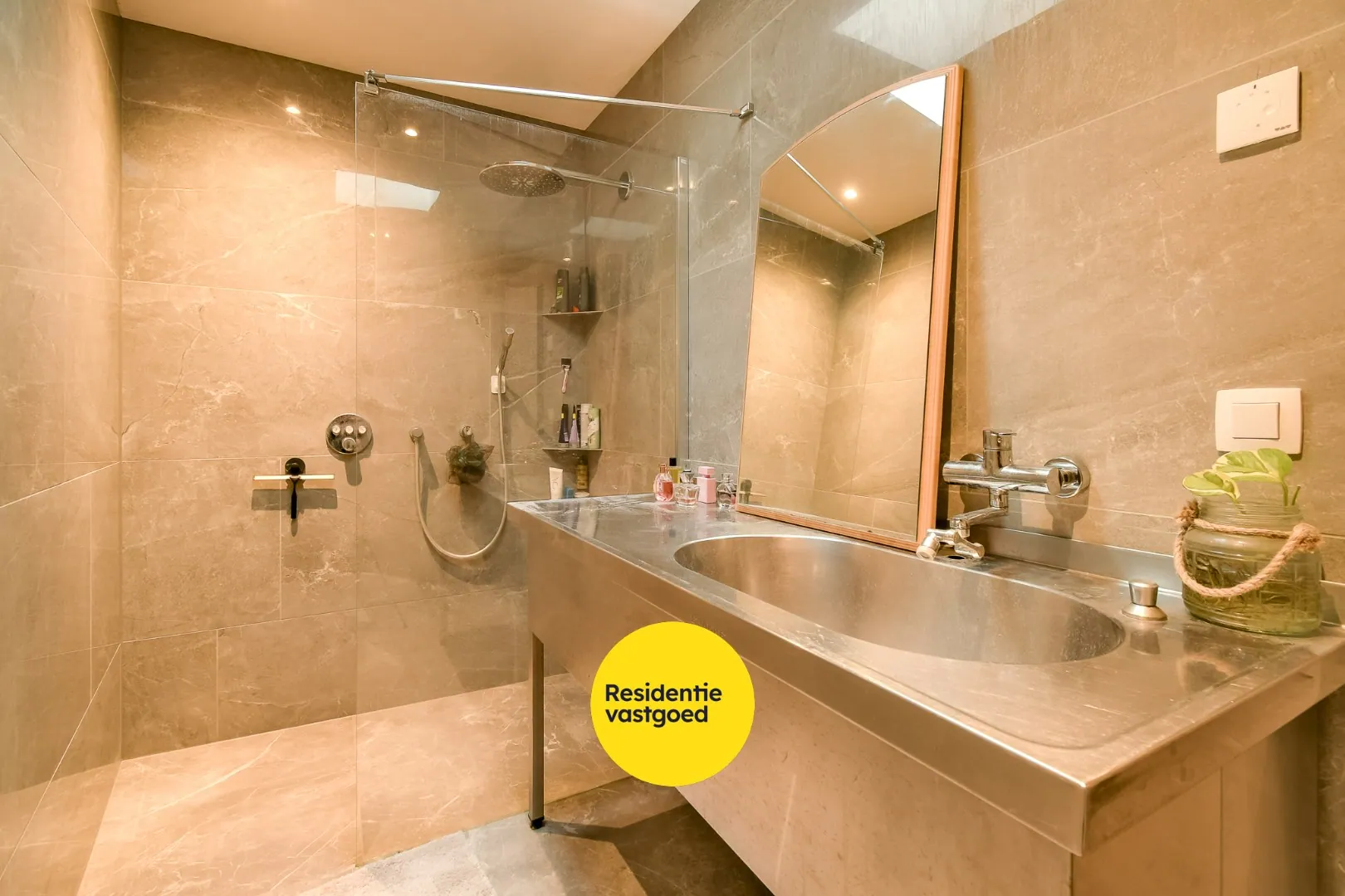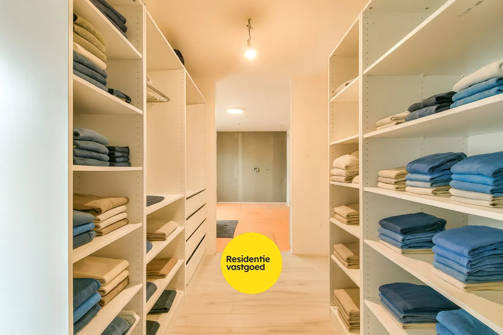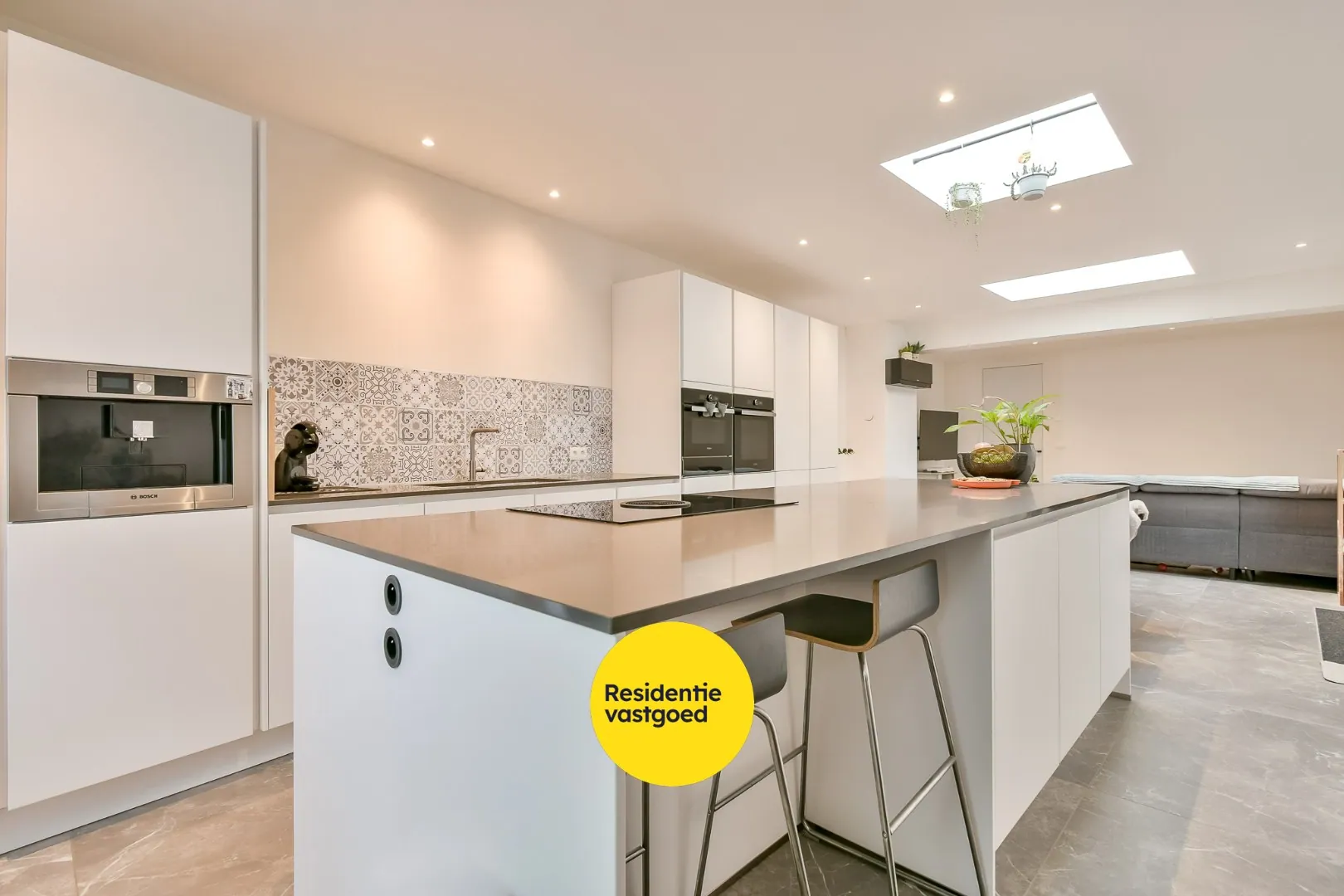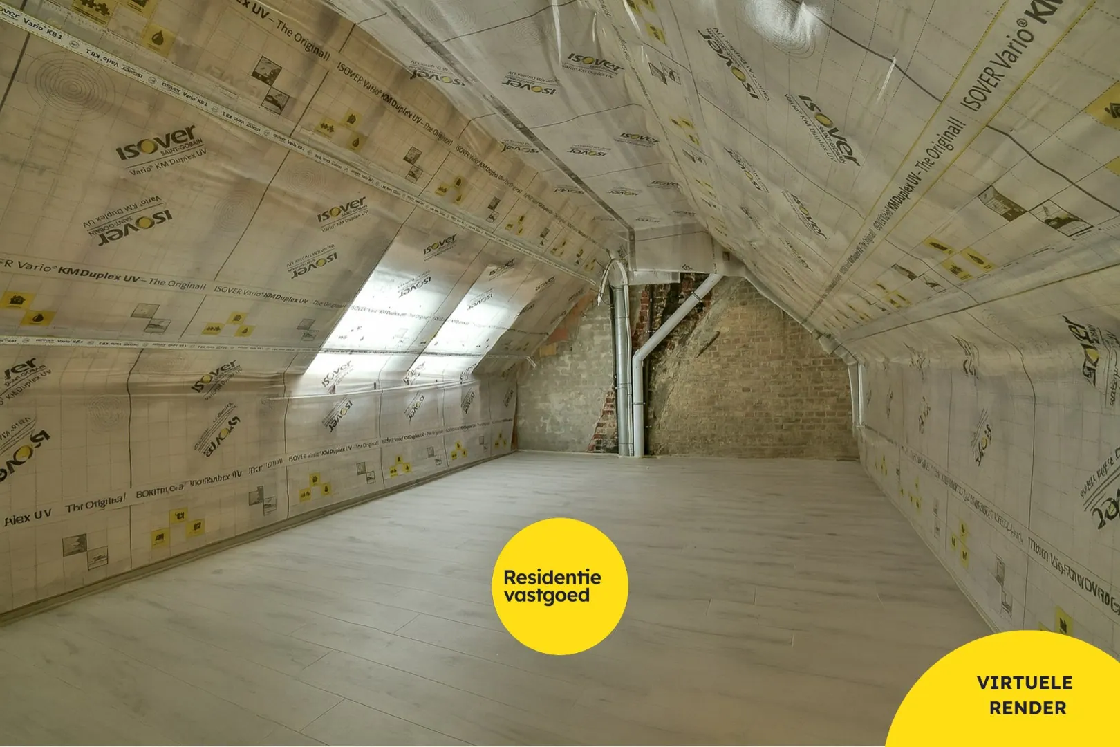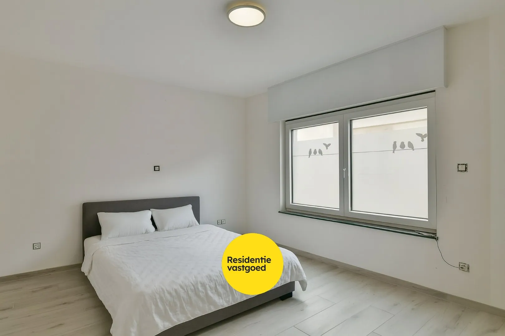 Via de lichtrijke inkomhal met gastentoilet en vestiaireruimte bereikt u de bureauruimte, ideaal voor thuiswerk. De ruime leefruimte sluit naadloos aan op de moderne, volledig uitgeruste keuken met energiezuinige toestellen. Verder vindt u op het gelijkvloers een badkamer met inloopdouche en een praktische wasplaats met technische voorzieningen.