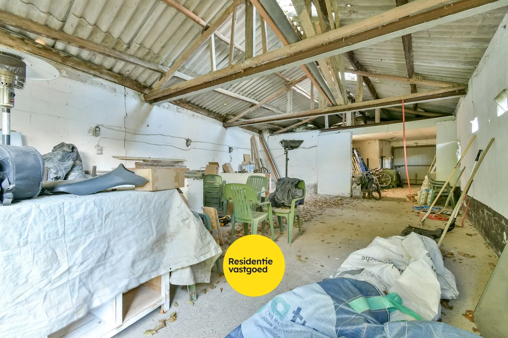 Buiten geniet u van rust en privacy in een groene omgeving. De ruime loods van ca. 100 m² biedt tal van mogelijkheden als opslag- of hobbyruimte.