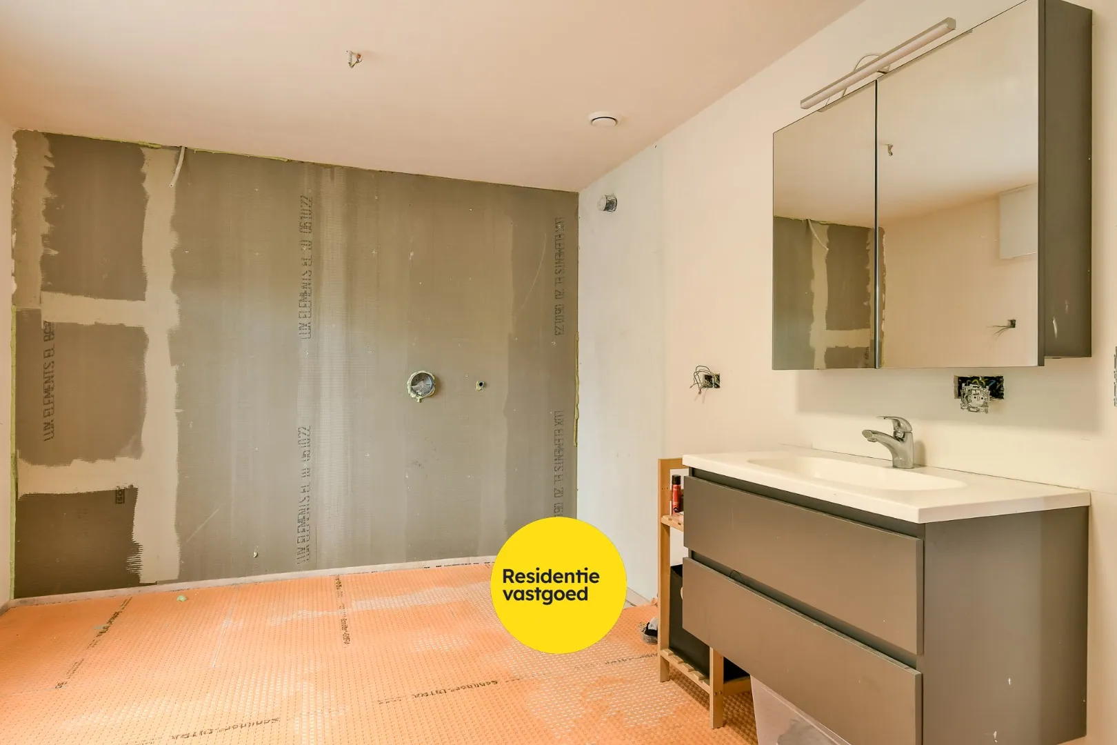 Op de eerste verdieping zijn er twee volwaardige slaapkamers, een dressing met toegang tot de zolder (mogelijkheid tot derde slaapkamer) en een tweede badkamer die nog verder afgewerkt dient te worden. Alle aansluitingen voor inloopdouche, ligbad en lavabomeubel zijn reeds voorzien.