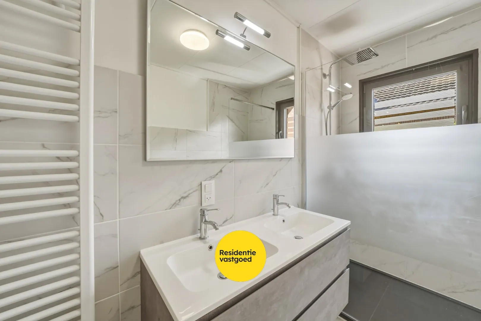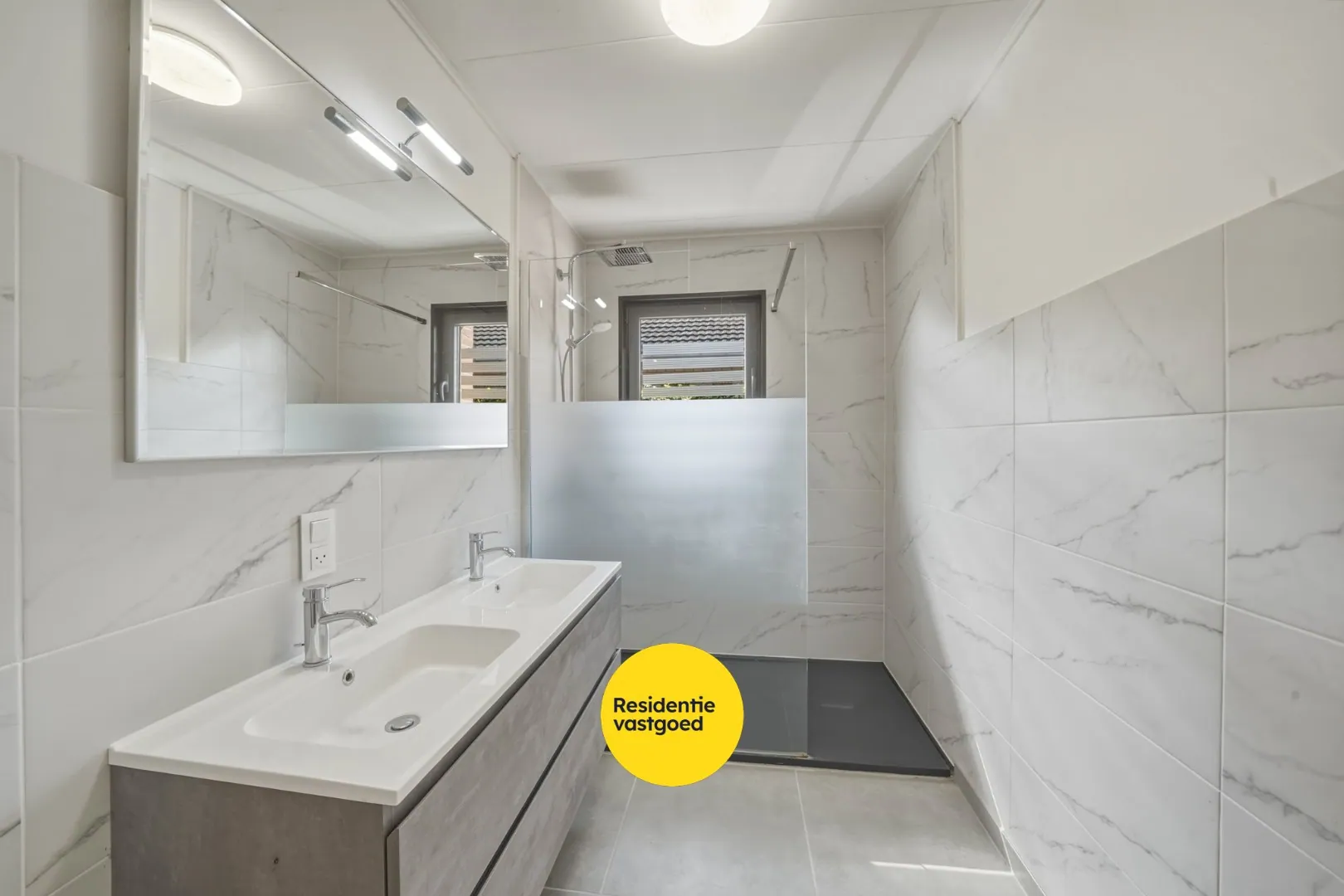 De woning biedt een praktische indeling met een inkomhal en gastentoilet, een lichtrijke leefruimte met houtcassette en een ruime keuken met eetplaats die uitgeeft op het aangelegd terras. Verder zijn er drie volwaardige slaapkamers en een recent vernieuwde badkamer (2024) met inloopdouche en dubbele lavabo.
