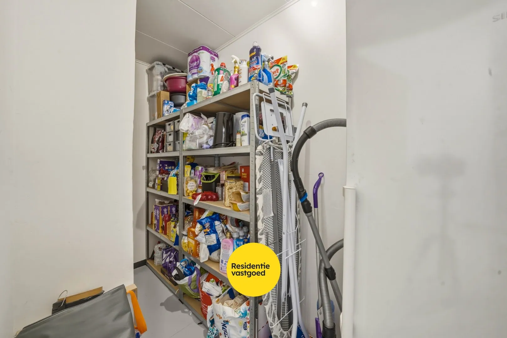 De garage werd omgevormd tot een polyvalente ruimte met wasvoorzieningen, hier kan je een extra kamer, hobbyruimte of ruimte voor zelfstandige activiteit inrichten. Via de zoldertrap kom je op de ruime zolder met onderdak