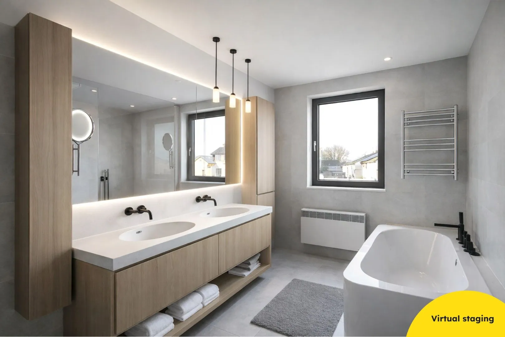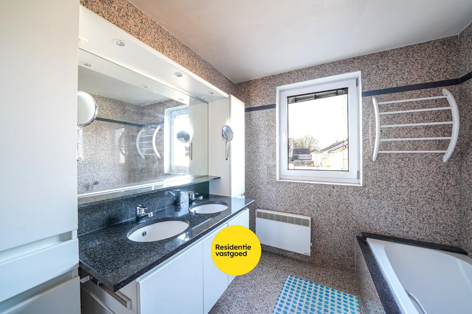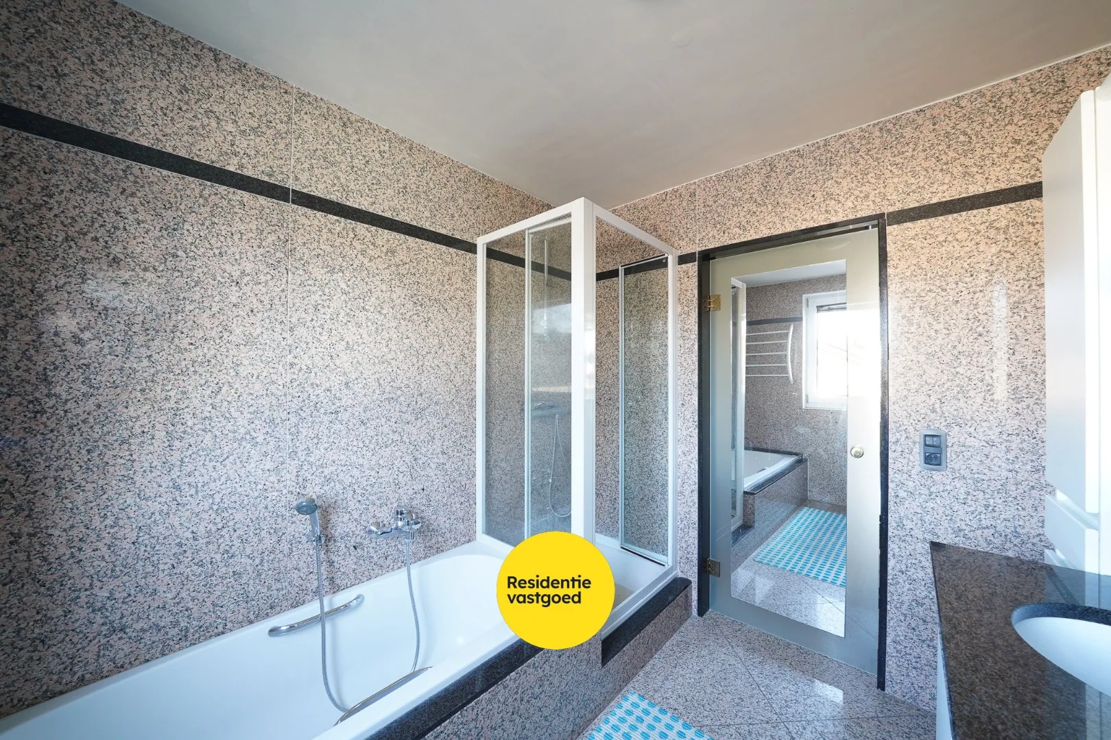 Verder is er een berging/wasplaats met aansluiting voor de wasmachine, boiler en zekeringskast. Via de nachthal bereik je de twee slaapkamers, die beide toegang geven tot het ruime terras. De badkamer is uitgerust met een ligbad, douchecabine en een dubbele lavabo met meubel.