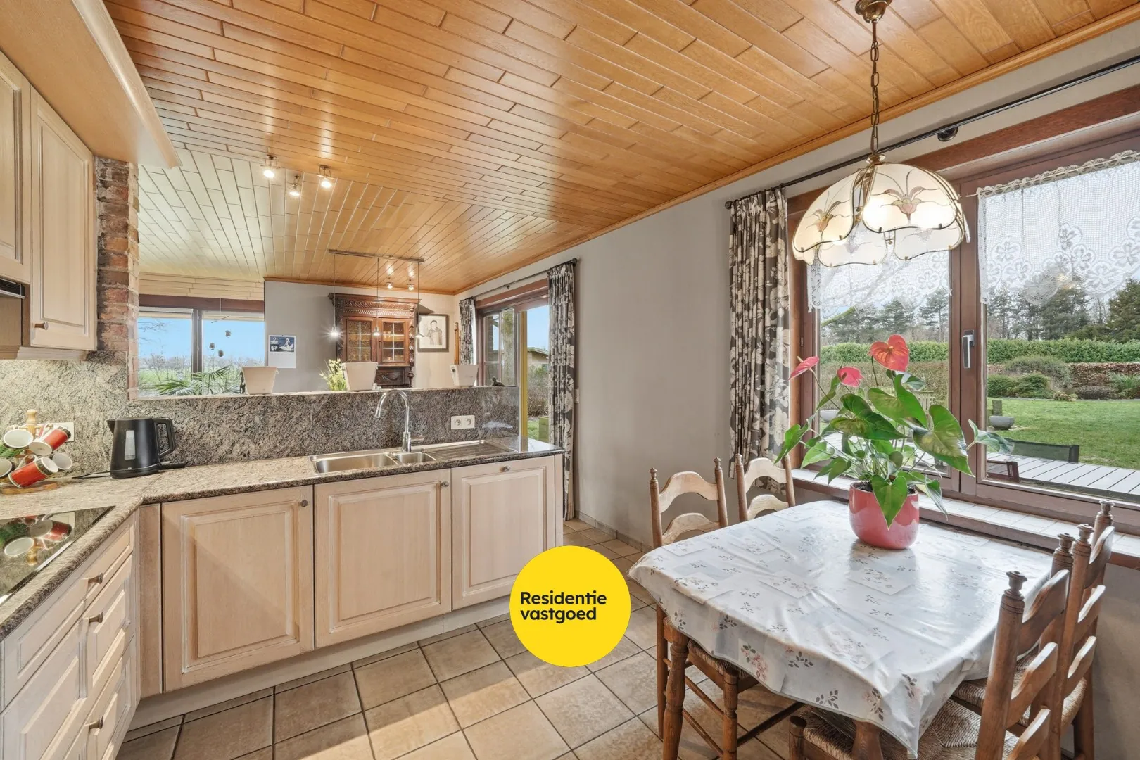 Op het gelijkvloers is een lichtrijke leefruimte met gezellige open haard en mooi open zicht op de tuin en omliggend groen, aansluitend is de volledig uitgeruste Dovy-keuken. Hier geniet je vanuit elke ruimte van veel lichtinval en groen uitzicht. Op het gelijkvloers bevinden zich tevens een bureau/slaapkamer, berging/wasplaats, kelder, ruime garage en een ruim atelier!