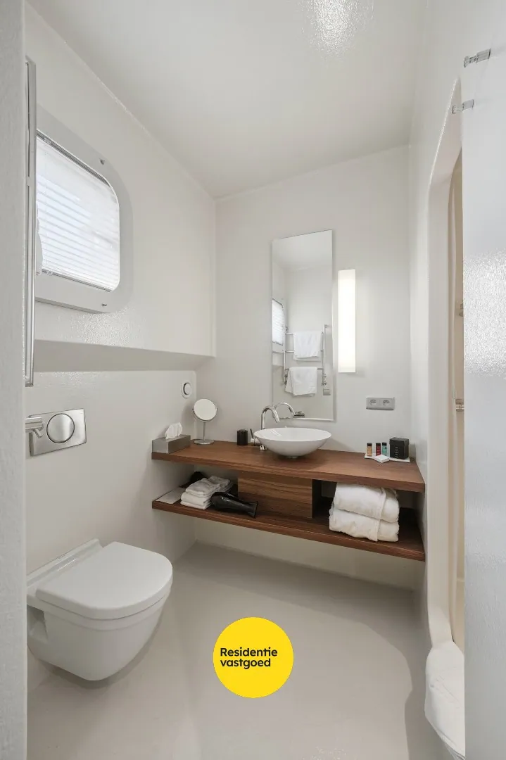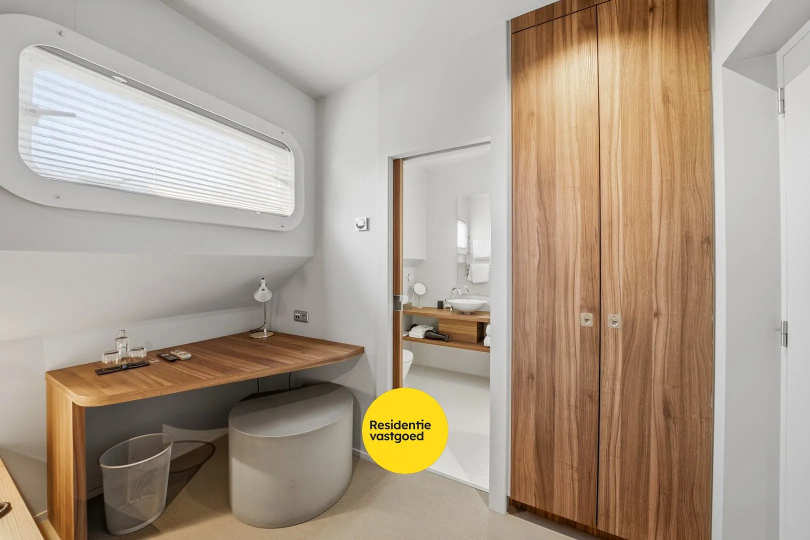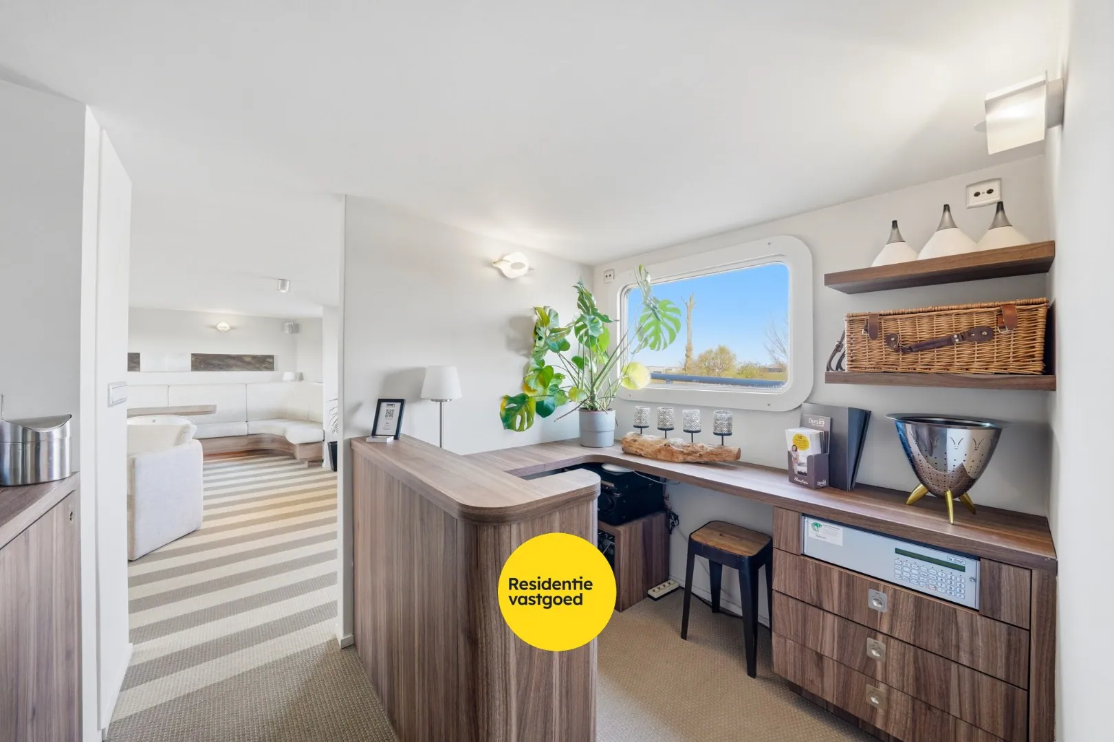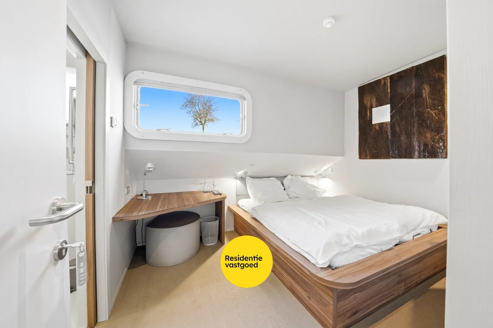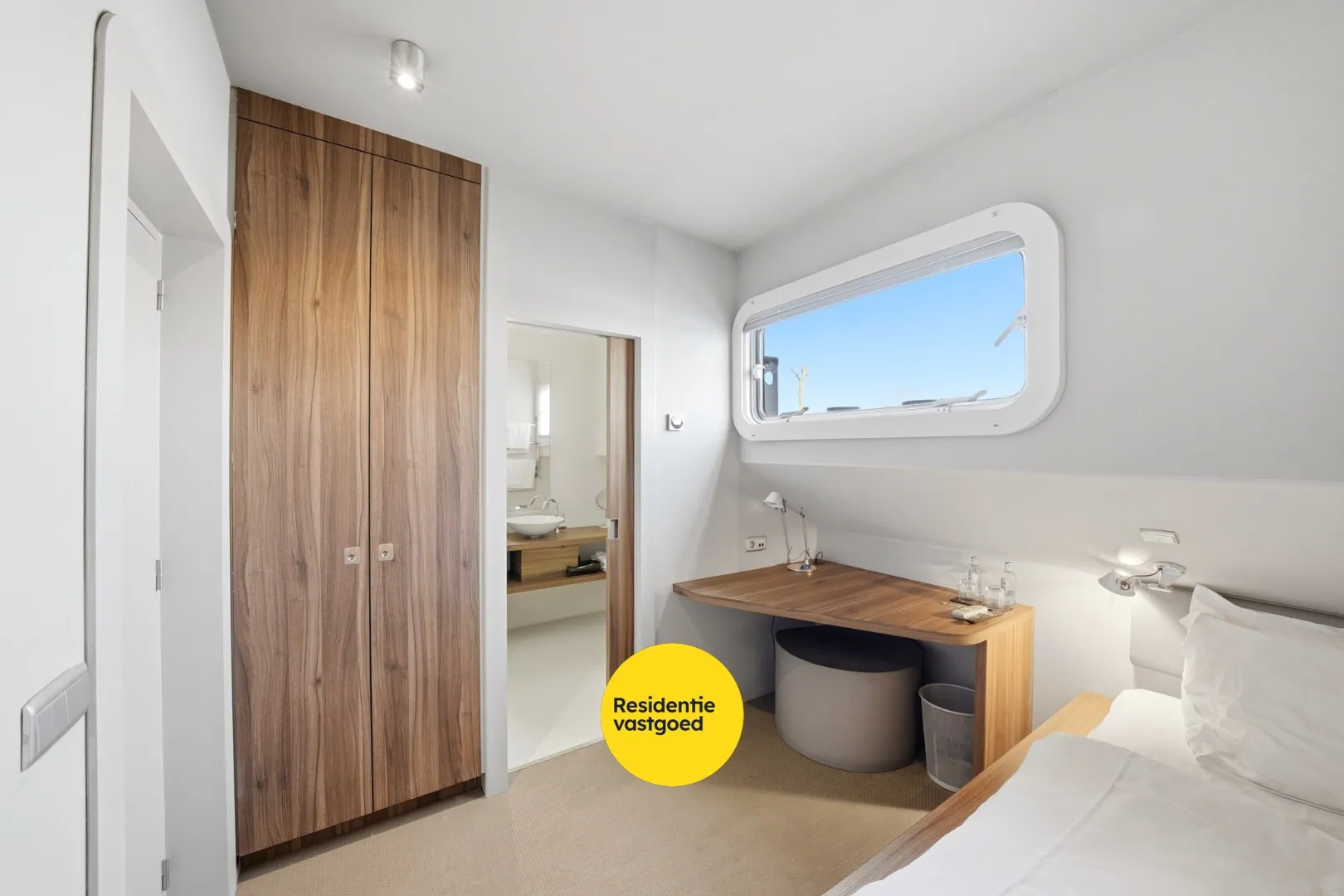 Het privé-woongedeelte omvat een volledig geïnstalleerde keuken, met open leefruimte met zicht via da patrijspoorten op het water. Deze ruimte is bijna magisch te noemen. Verder is er nog een slaapkamer met ensuite badkamer en apart toilet.