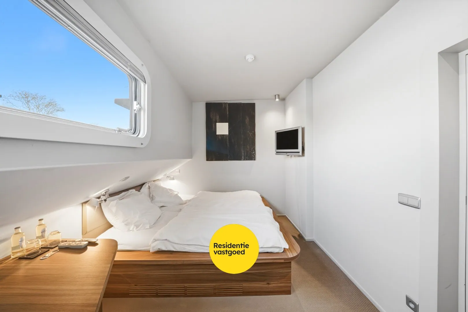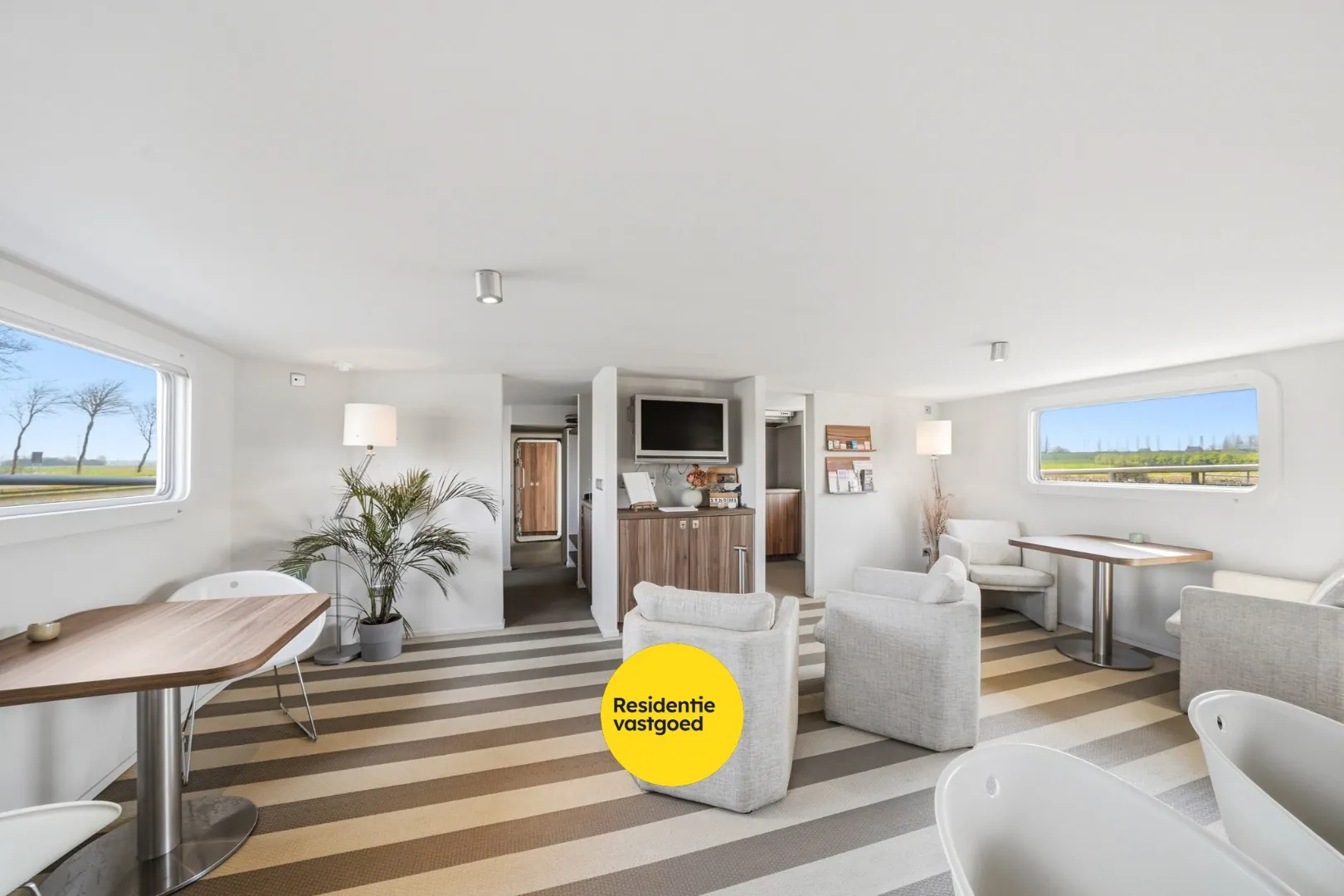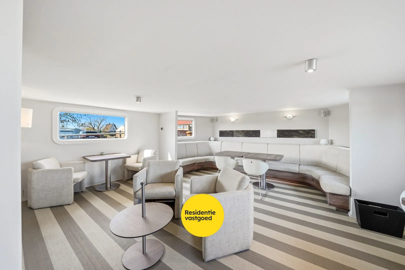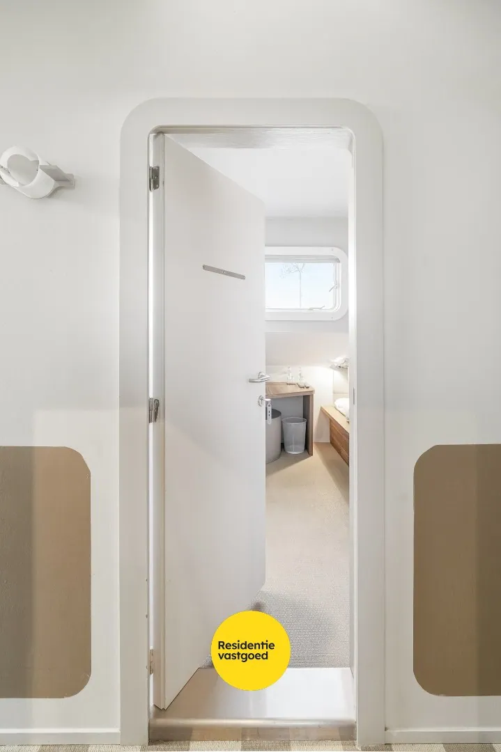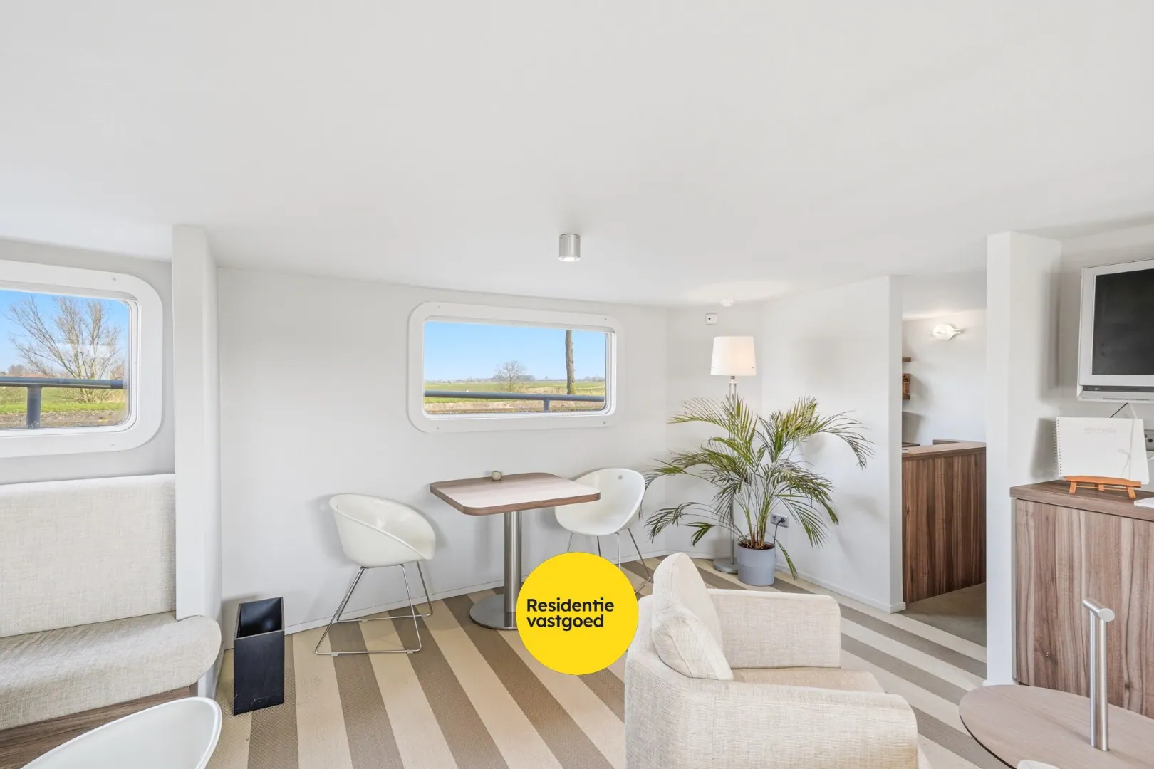 Het privé-woongedeelte omvat een volledig geïnstalleerde keuken, met open leefruimte met zicht via da patrijspoorten op het water. Deze ruimte is bijna magisch te noemen. Verder is er nog een slaapkamer met ensuite badkamer en apart toilet.