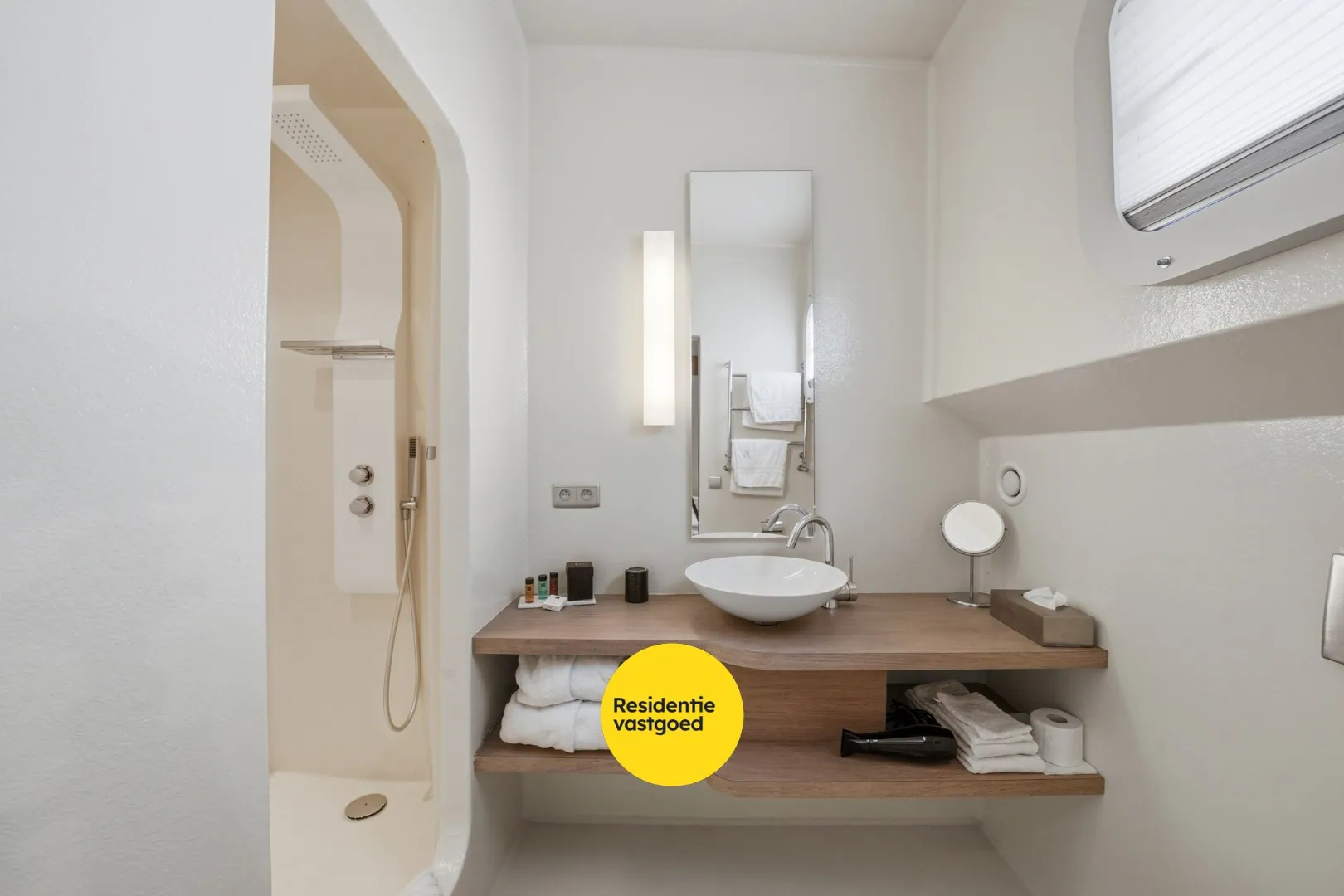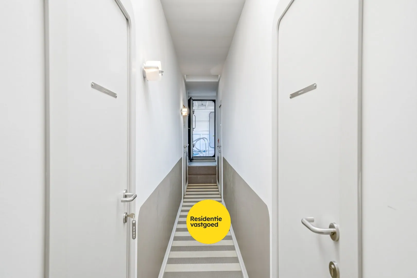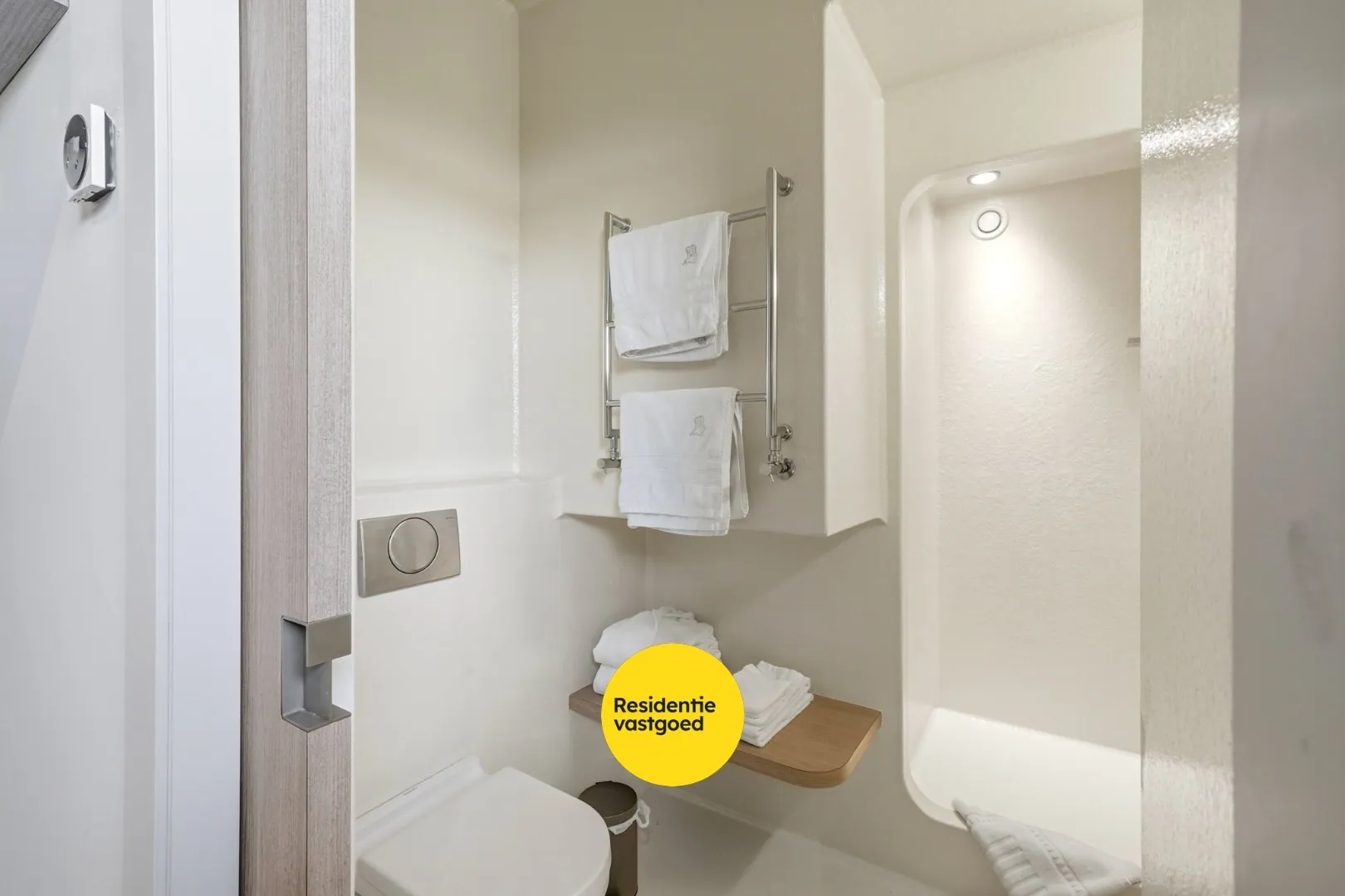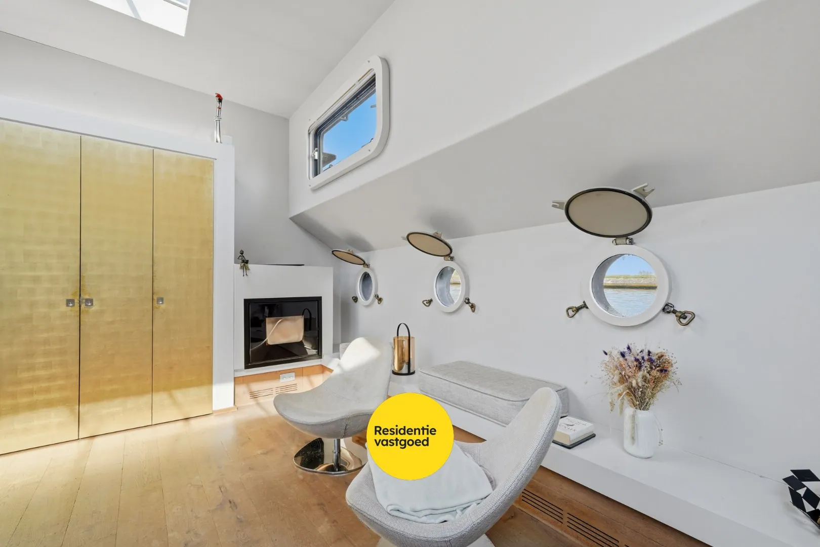 Het privé-woongedeelte omvat een volledig geïnstalleerde keuken, met open leefruimte met zicht via da patrijspoorten op het water. Deze ruimte is bijna magisch te noemen. Verder is er nog een slaapkamer met ensuite badkamer en apart toilet.