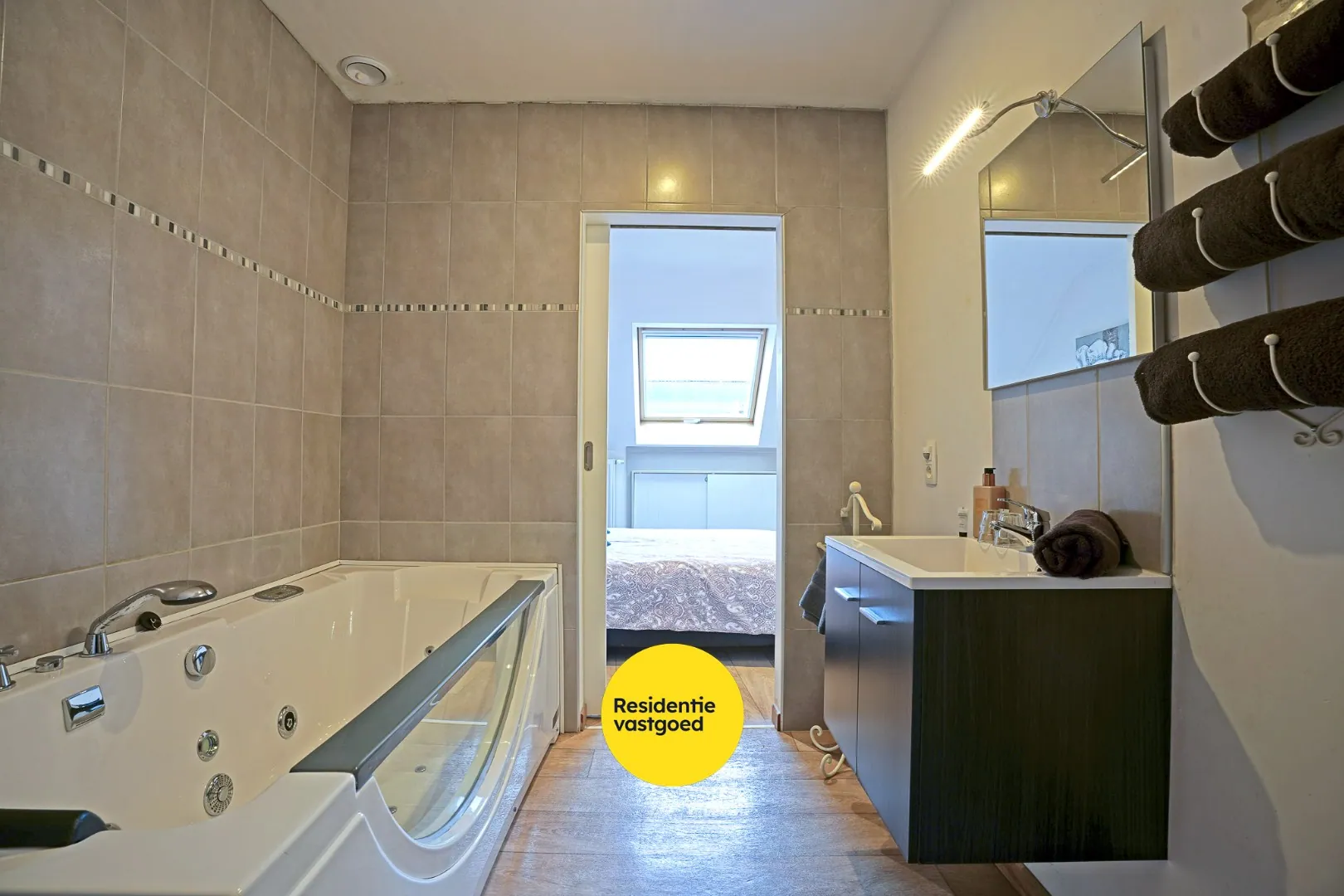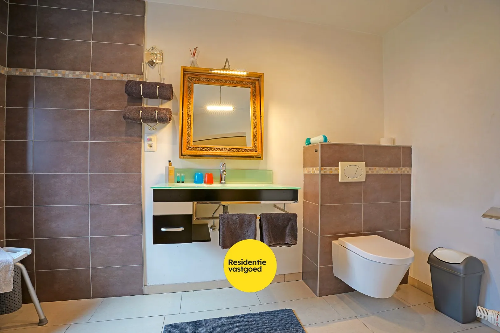 De verdieping telt nog drie slaapkamers, telkens voorzien van ingemaakte kasten en een eigen douchekamer met toilet — perfect voor verhuur of grotere gezinnen.