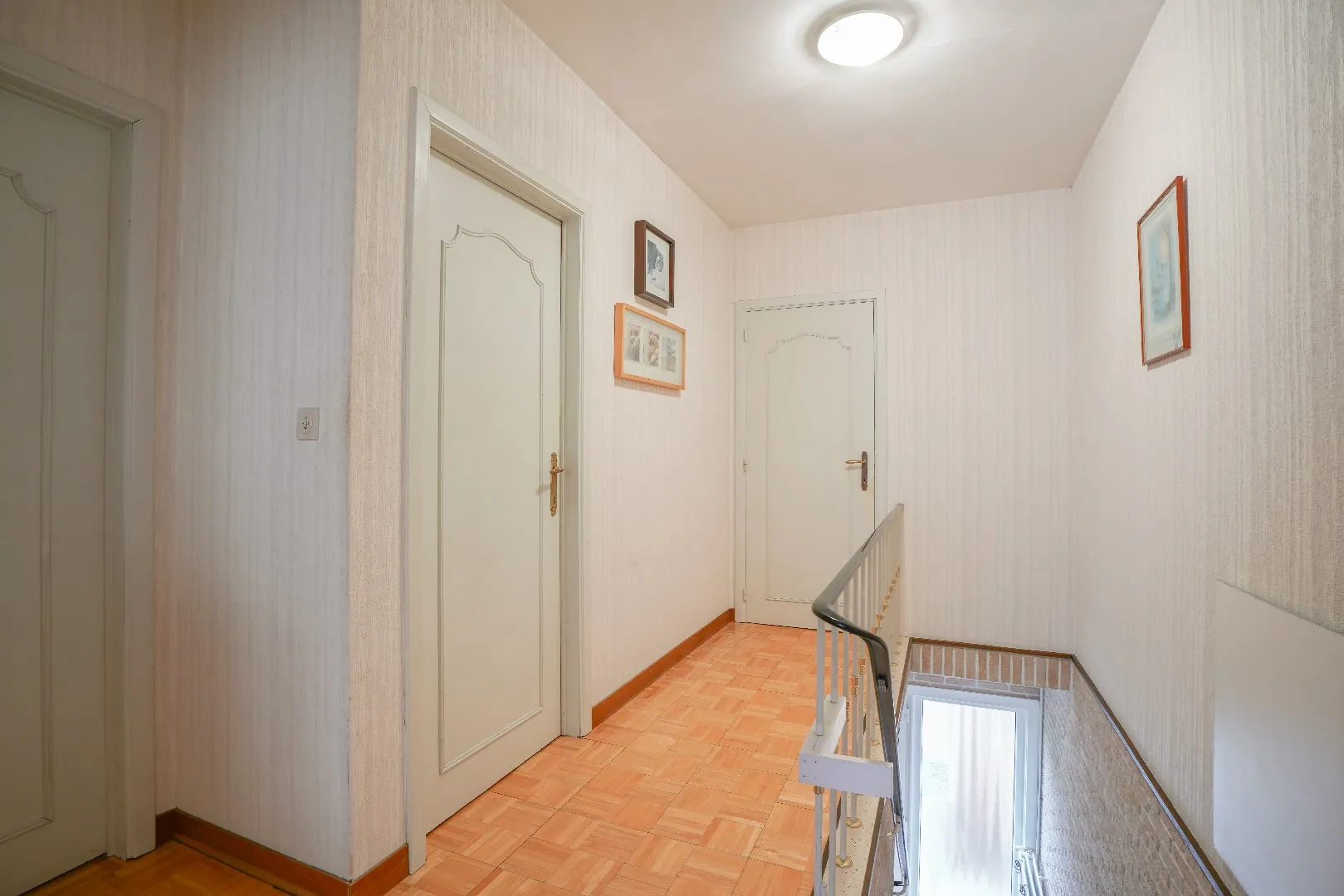 Op de eerste verdieping bevinden zich drie slaapkamers en een nachthal met toegang tot de zolder. De zolderverdieping van ca. 42 m² biedt bijkomende mogelijkheden en kan perfect ingericht worden als extra kamer, hobbyruimte of bureau.