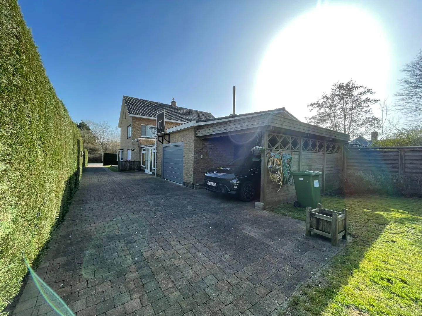 Verder beschikt de woning over een ruime garage (ca. 30 m²) met automatische sectionale poort, wasvoorzieningen en extra bergruimte, aangevuld met een carport naast de woning.