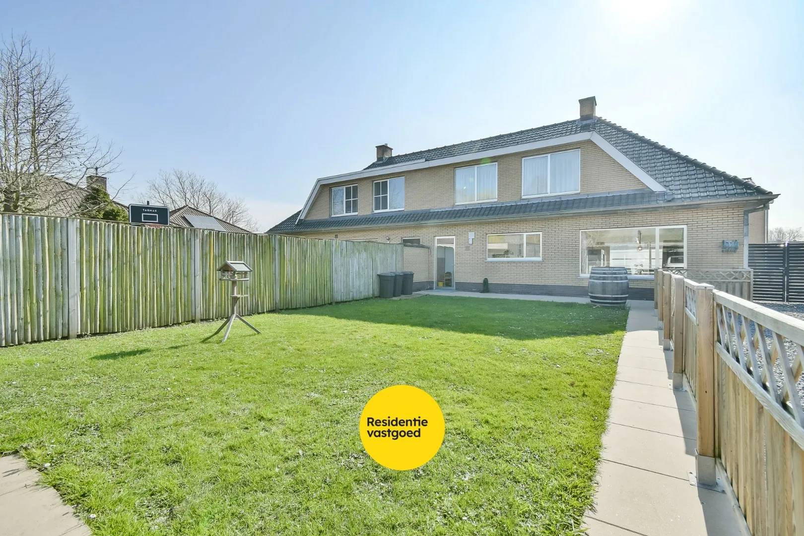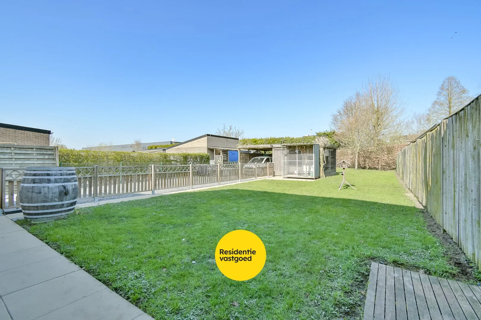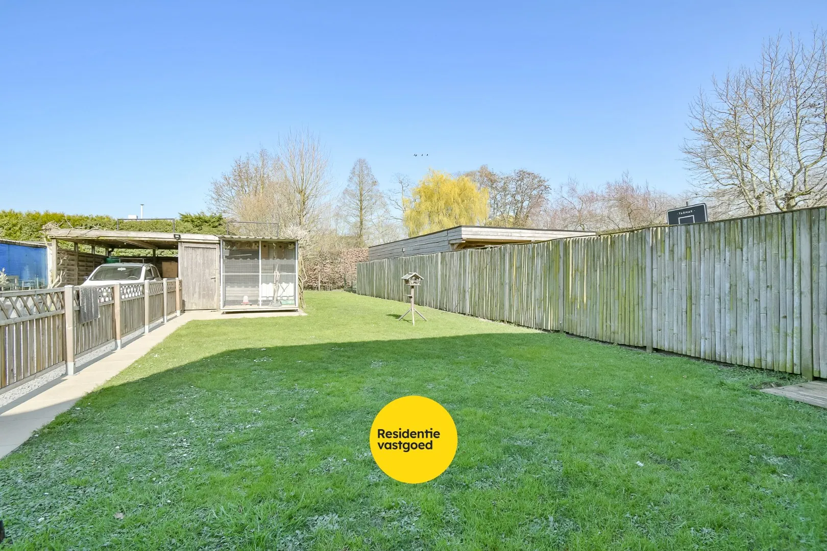De fraai aangelegde tuin geniet van middag- en avondzon en is de ideale plaats voor spelende kindjes of een lekker hapje en drankje in de zomer. De oprit biedt toegang tot de carport en het tuinhuis.