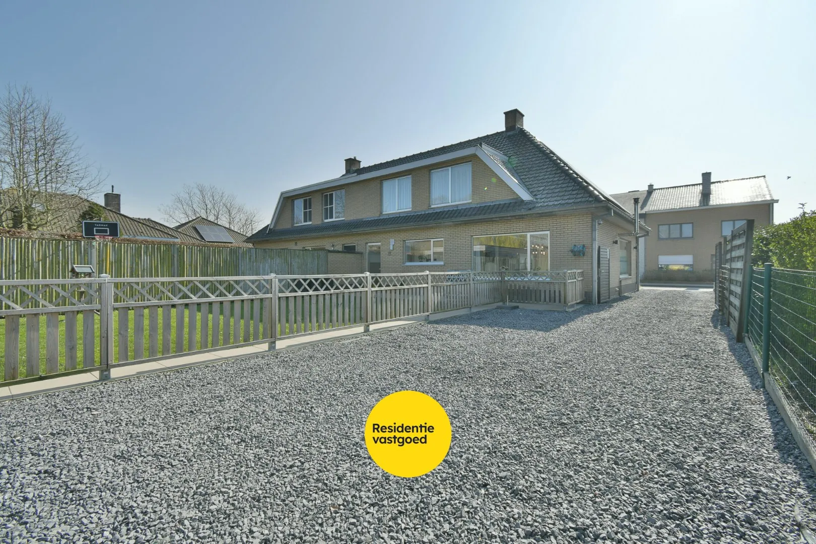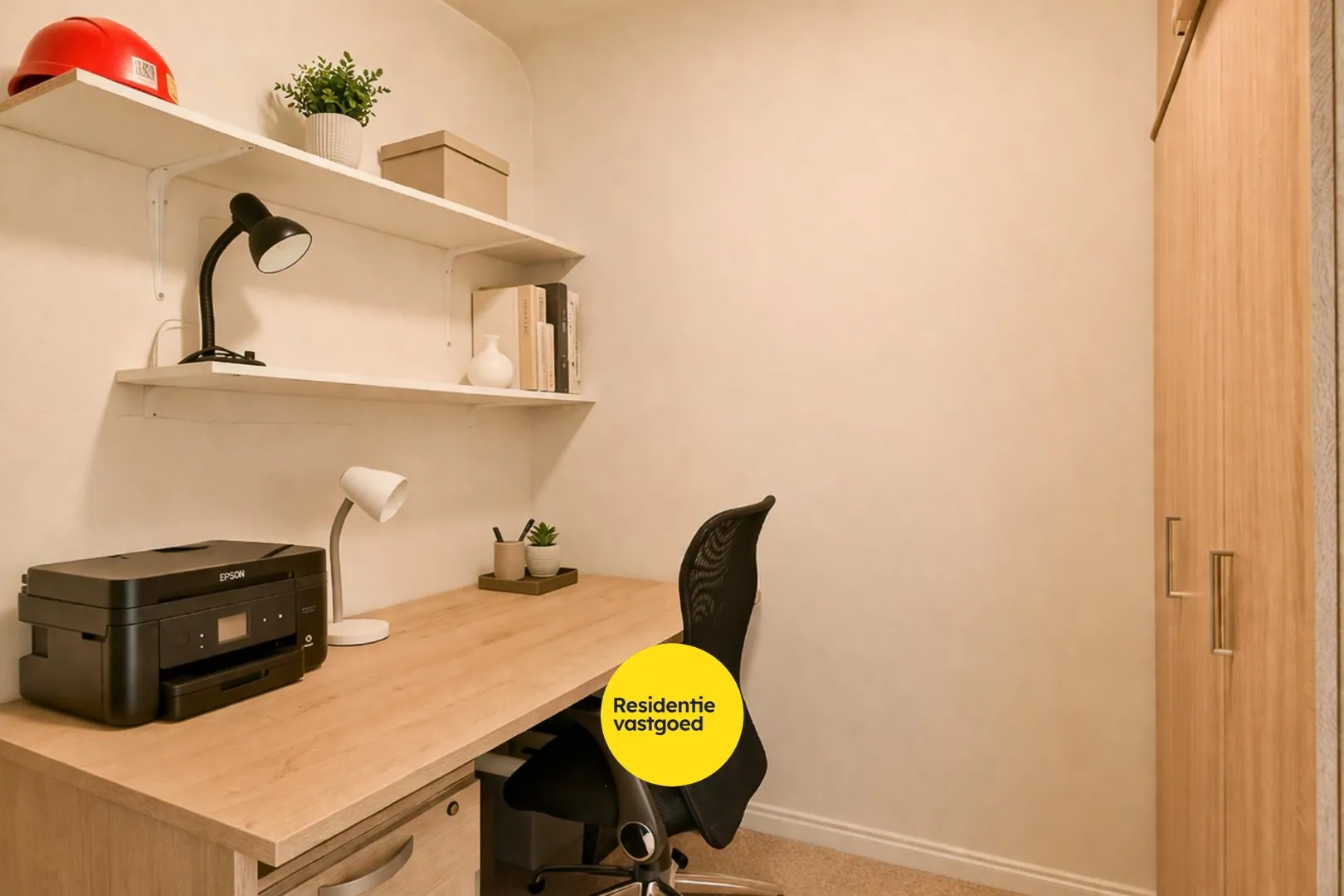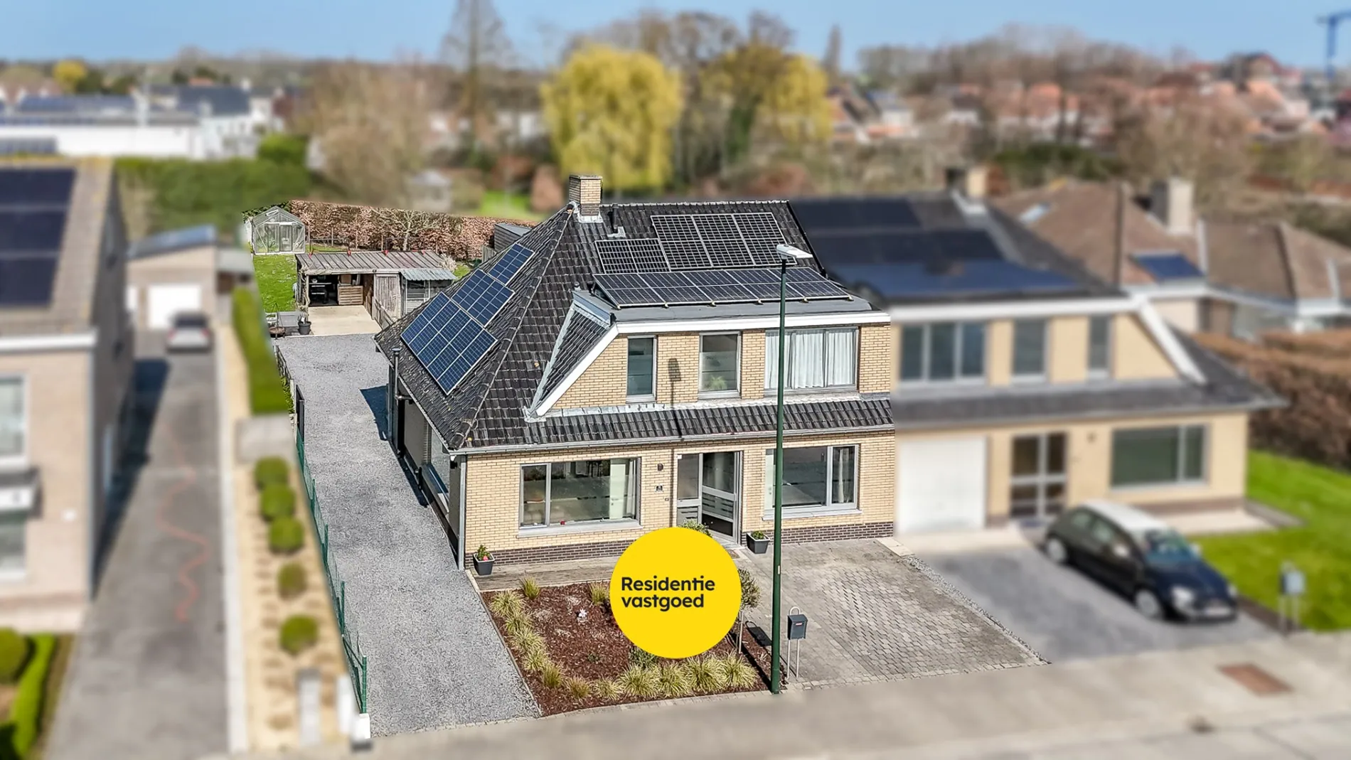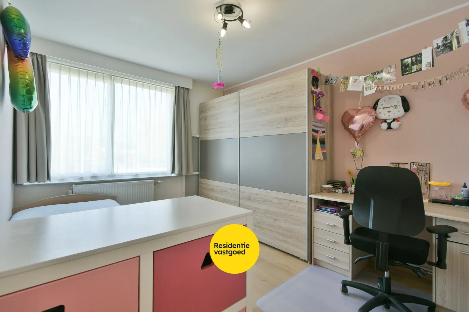 U betreedt de woning via een ruime inkomhal met gastentoilet en vestiaire. De lichtrijke leefruimte met grote raampartijen sluit naadloos aan op de eetplaats met zicht op de groene tuin. De moderne open keuken is voorzien van kwalitatieve toestellen. Op het gelijkvloers bevindt zich bovendien een extra slaapkamer, ideaal als bureau, praktijkruimte of thuiskantoor.