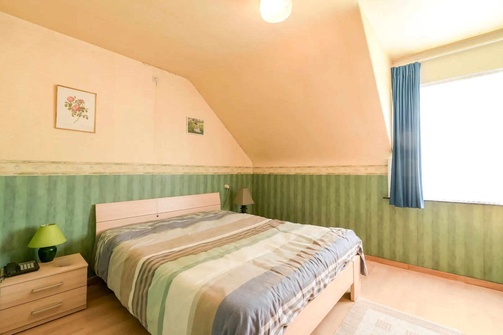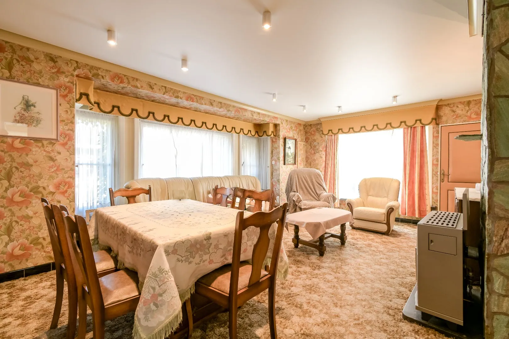 De inkomhal leidt u naar de ruime, lichtrijke leefruimte met grote raampartijen. De praktische keuken sluit mooi aan bij de eetplaats, die verder doorloopt in een zonovergoten veranda. Op de gelijkvloerse verdieping vindt u bovendien een apart gastentoilet. Boven beschikt de woning over drie volwaardige slaapkamers en een ruime badkamer die perfect kan ingericht worden naar uw wensen. Extra bergruimte is voorzien in de kelder, de ruime garage en de aangebouwde koterij.