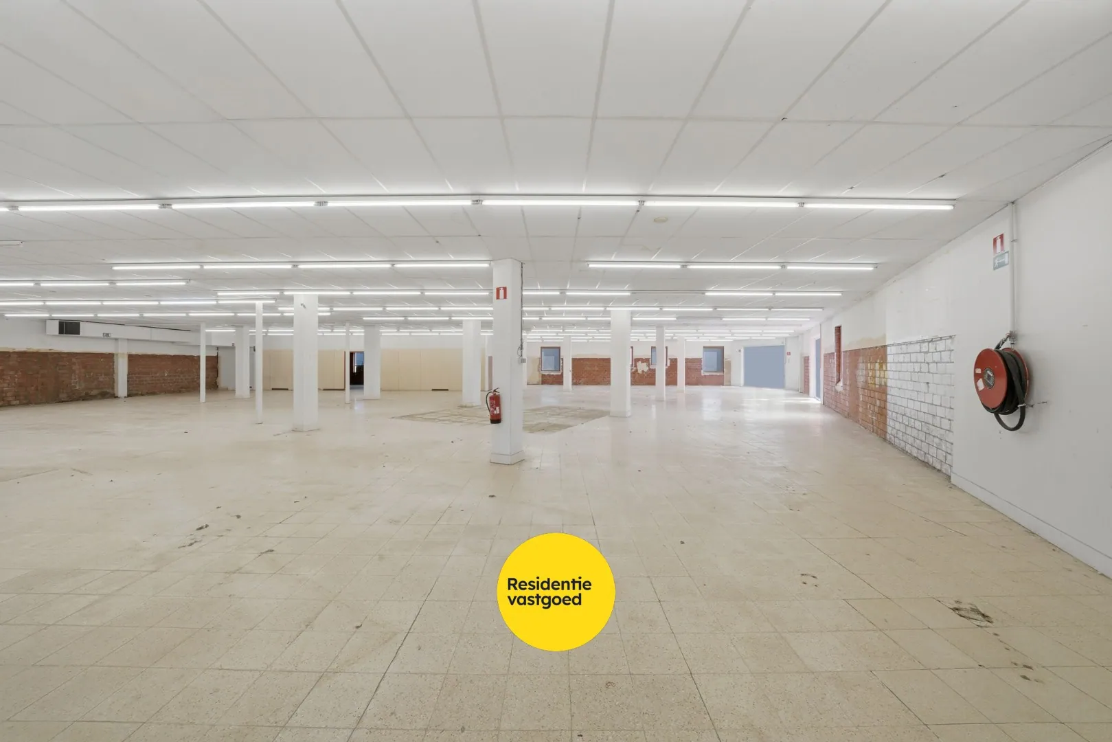 Aansluitend vindt u een praktische technische ruimte met een verzwaarde elektrische installatie, evenals een aparte vergader- of kantineruimte met aansluitingen voor water en elektriciteit, perfect voor het installeren van een compacte keuken. Achteraan bevindt zich een ruime logistieke zone met verwarmingsinstallatie en geïntegreerd sanitair, wat het geheel bijzonder functioneel maakt voor stockage en leveringen.