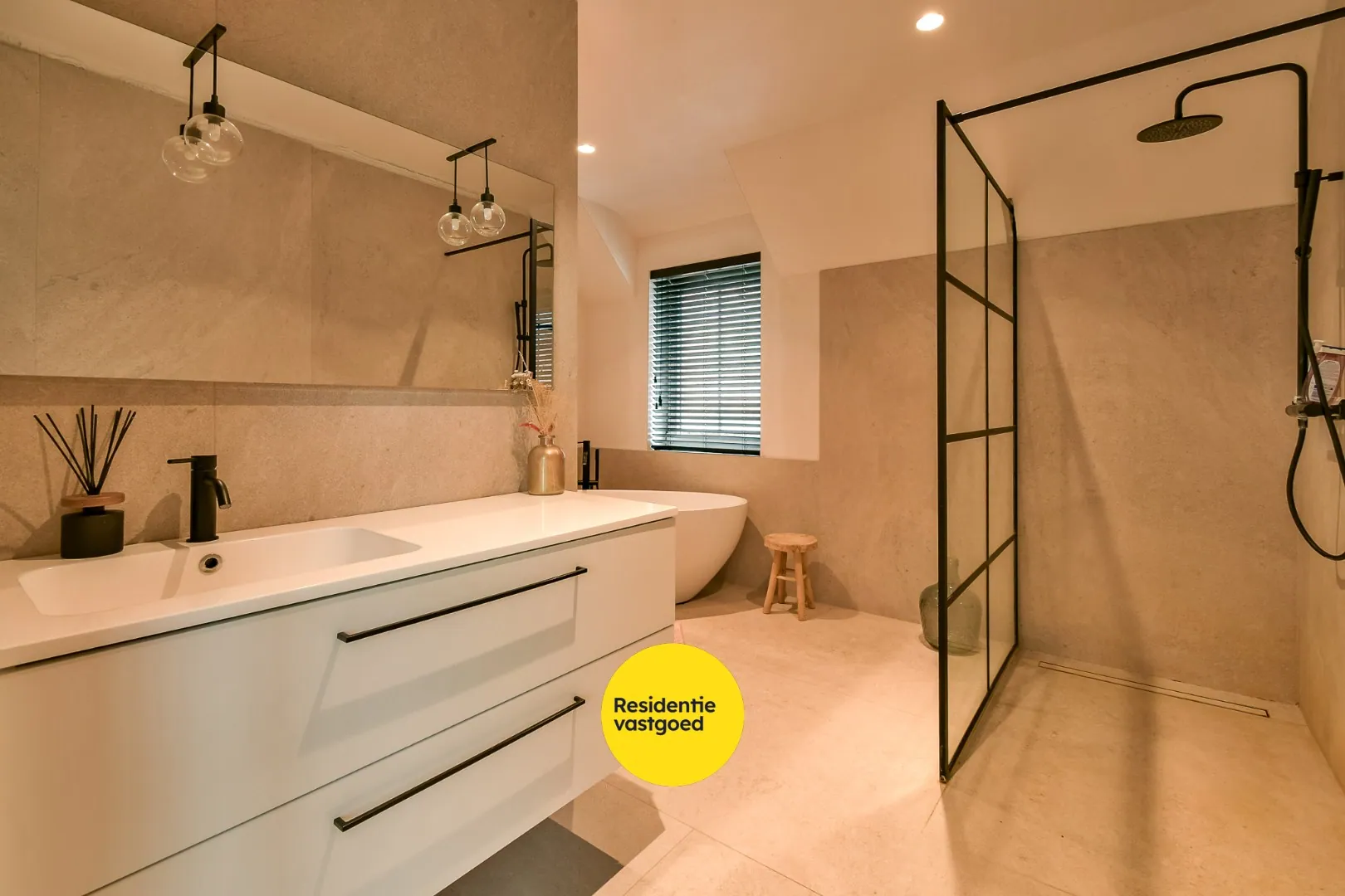 Op de eerste verdieping zijn er drie volwaardige slaapkamers, waarvan twee met lavabo en douche. De master bedroom beschikt over een dressing en directe toegang tot de badkamer met inloopdouche, ligbad, dubbele lavabo en sauna.