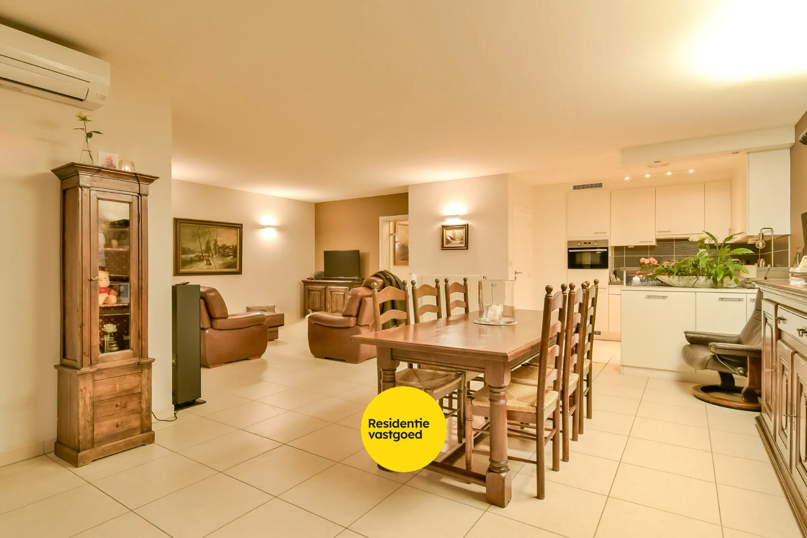 U betreedt het appartement via een ruime inkomhal met gastentoilet en plaats voor vestiaire. Vanuit de inkom komt u in de lichtrijke leefruimte, die mooi in verbinding staat met de eetkamer en de open keuken. De keuken is volledig uitgerust met dubbele spoelbak, vaatwasser, elektrische kookplaat, dampkap, heteluchtoven en inbouwkoelkast. Aansluitend vindt u een praktische berging met aansluiting voor een wasmachine.