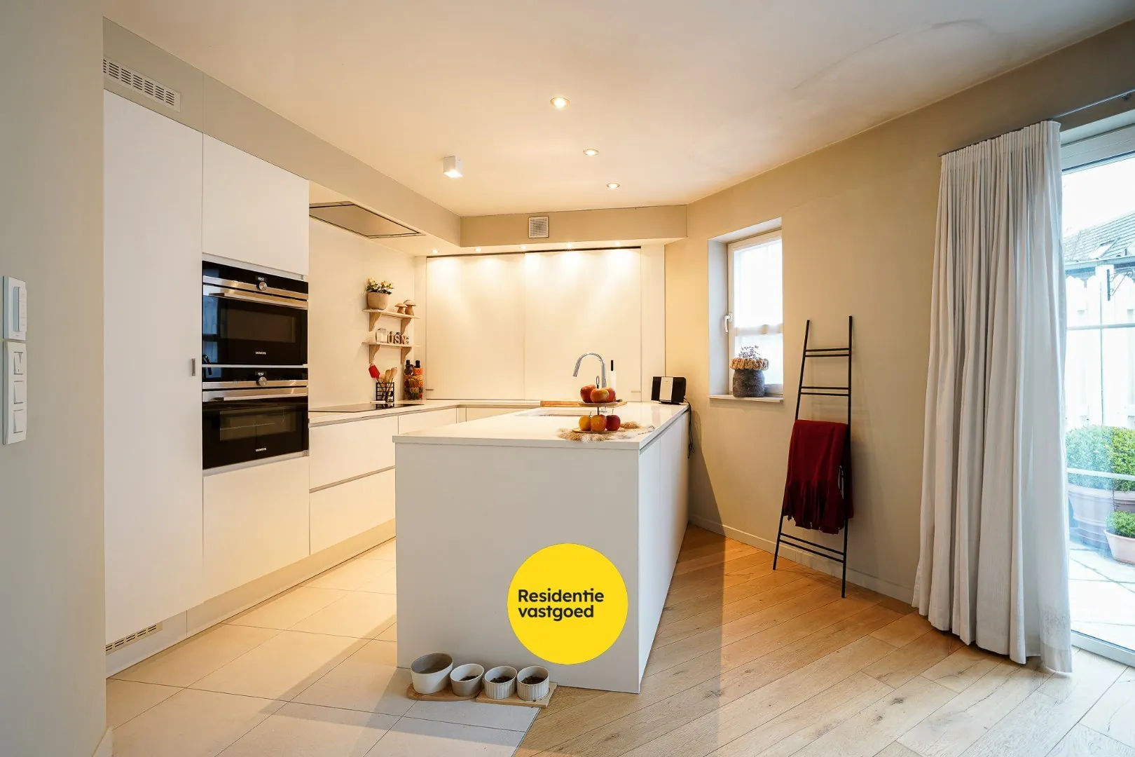 Het ruime terras van maar liefst 40 m² vormt een echte meerwaarde en biedt alle rust om volop van het buitenleven te genieten. Binnen zorgt de hoogwaardige afwerking voor een stijlvolle en warme sfeer, met onder meer een duurzame parketvloer en elegante vlinderscharnieren. De open keuken is volledig uitgerust met kwalitatieve toestellen van gerenommeerde merken en sluit naadloos aan op de leefruimte. De moderne badkamer beschikt over een ruime inloopdouche.